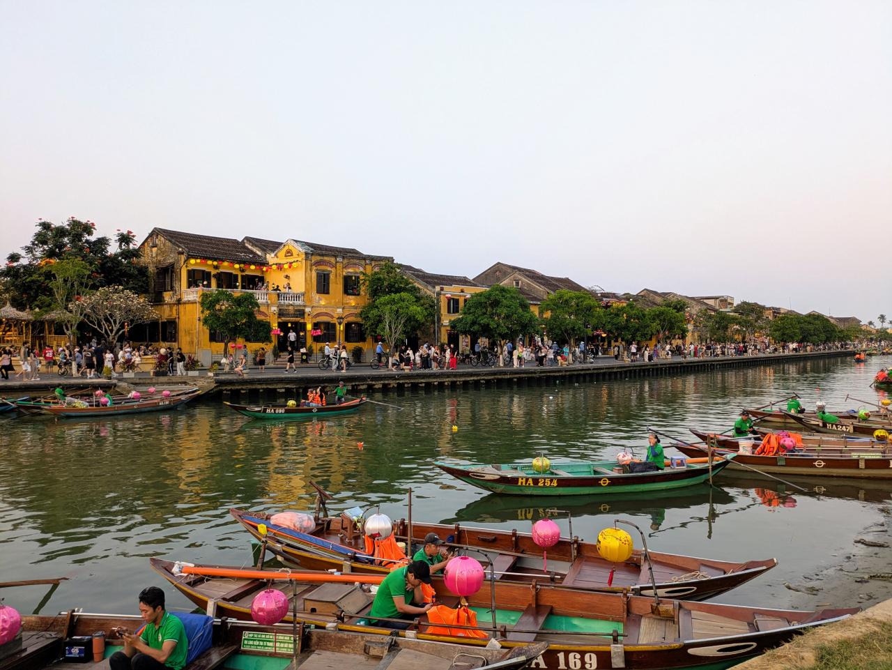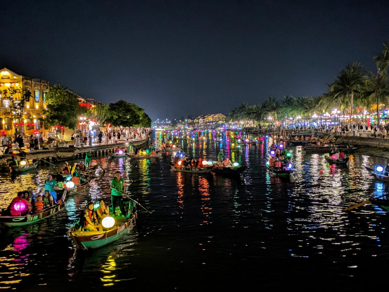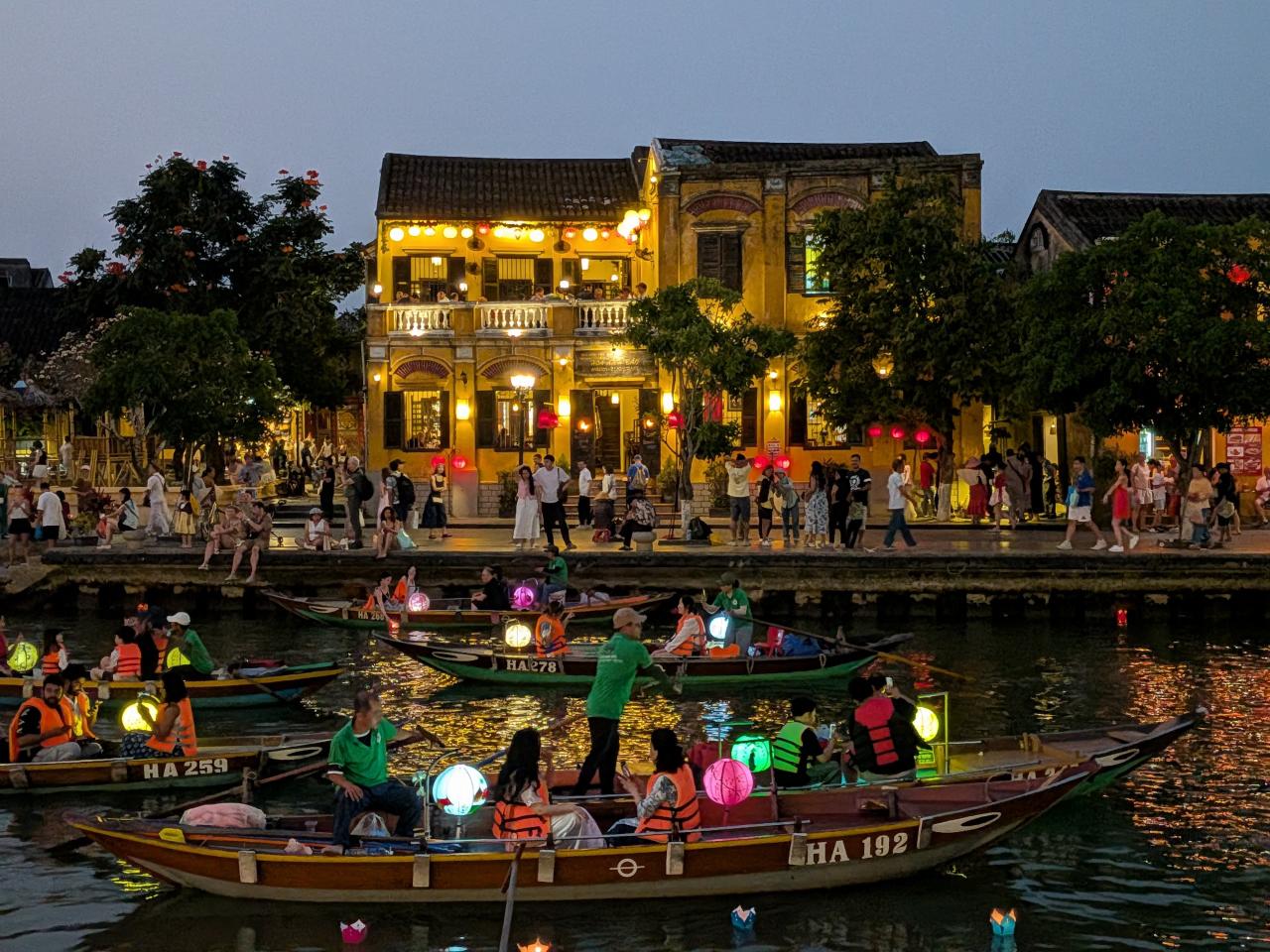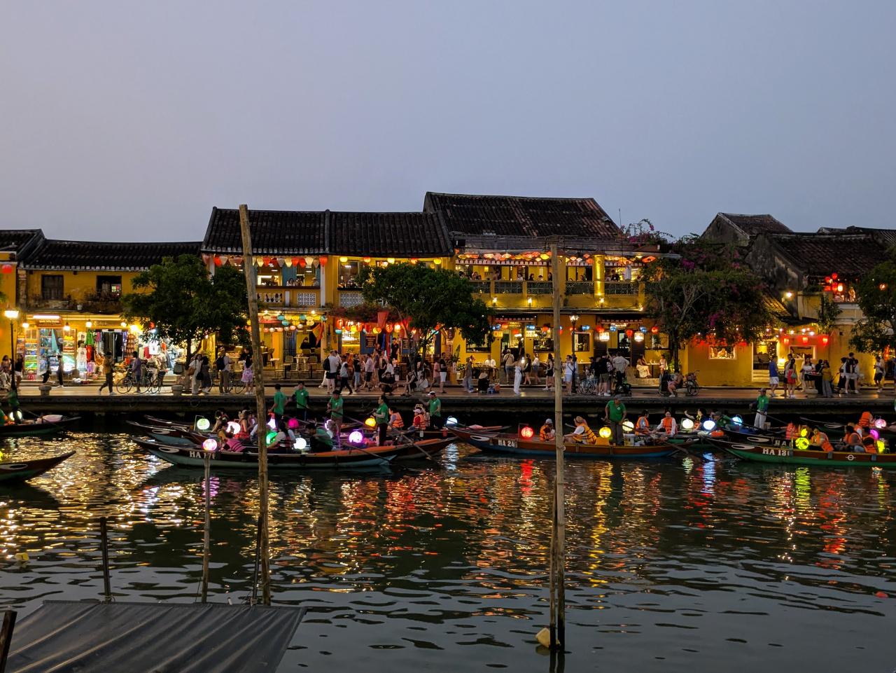 だんだん暗くなり、ランタンボートが川を行き交いはじめます。