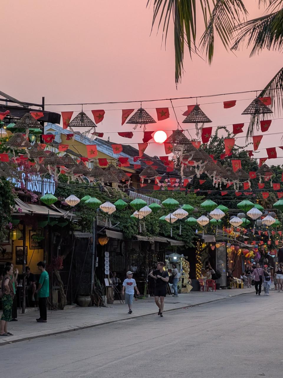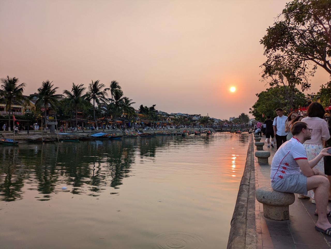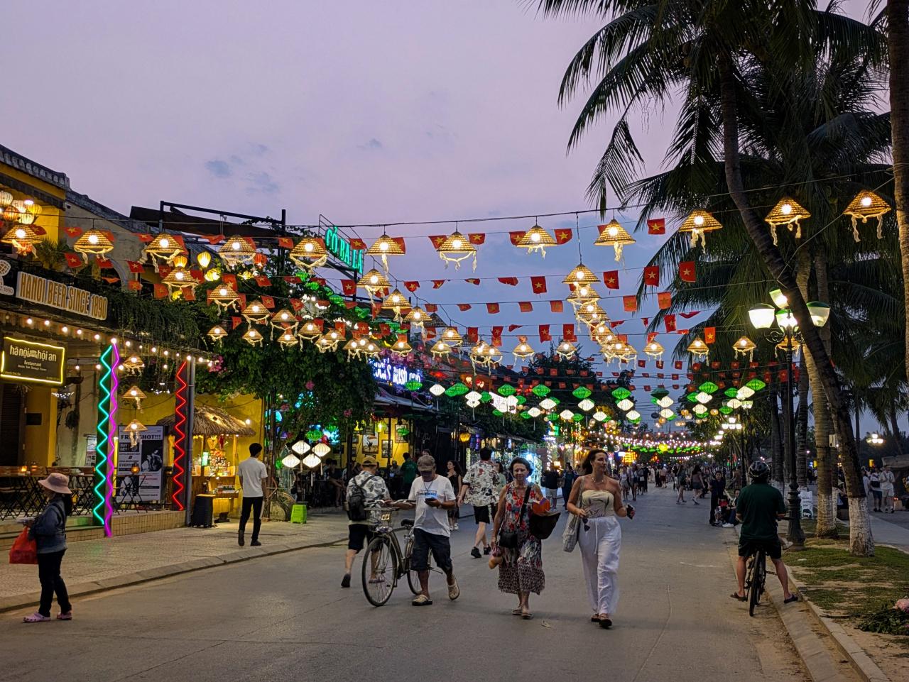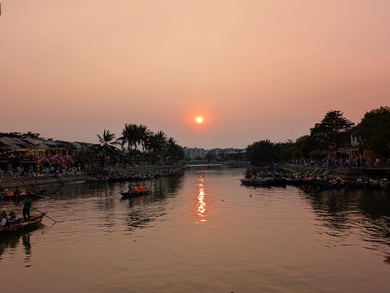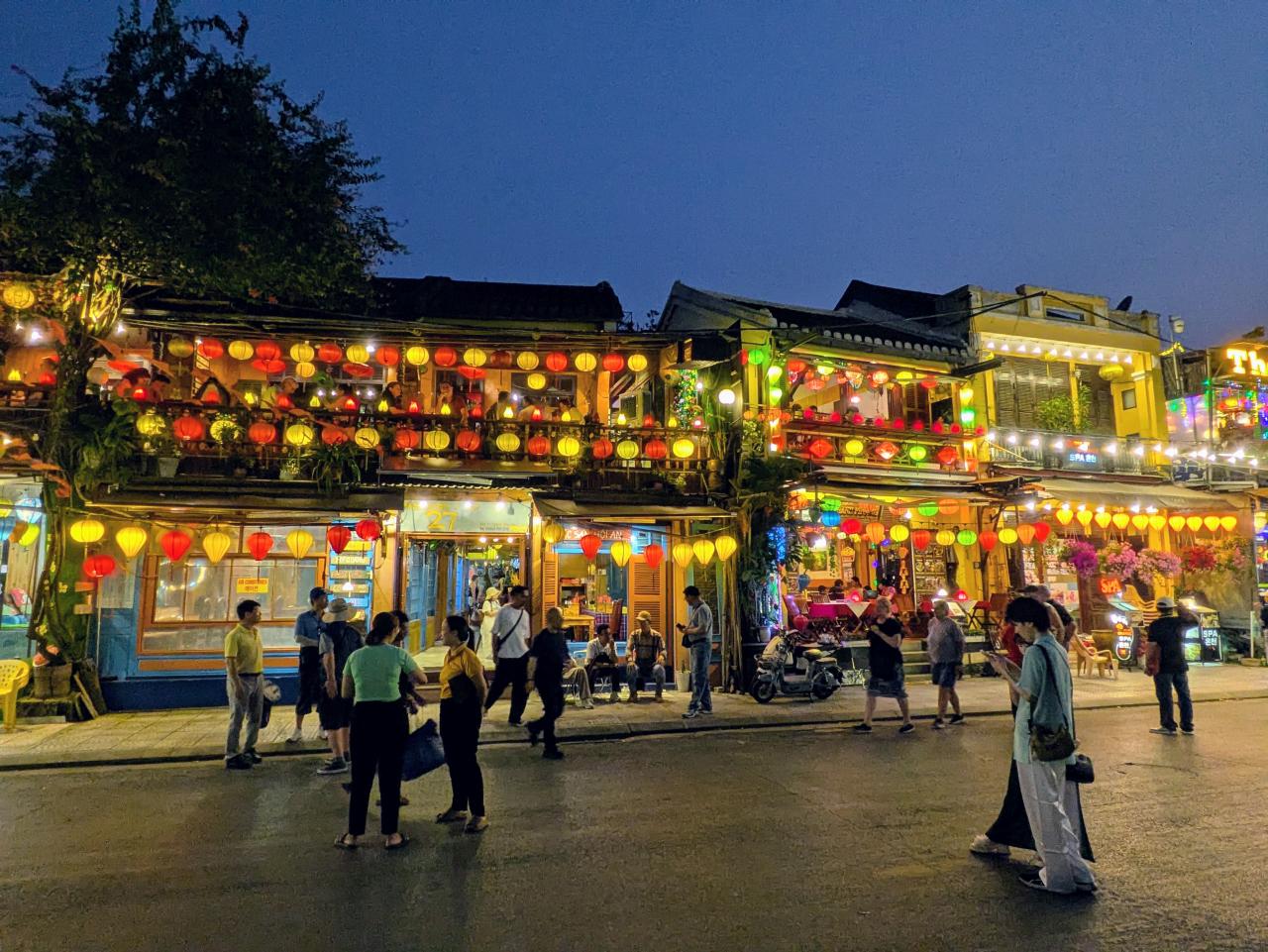 だんだん暗くなり、ランタンボートが川を行き交いはじめます。
