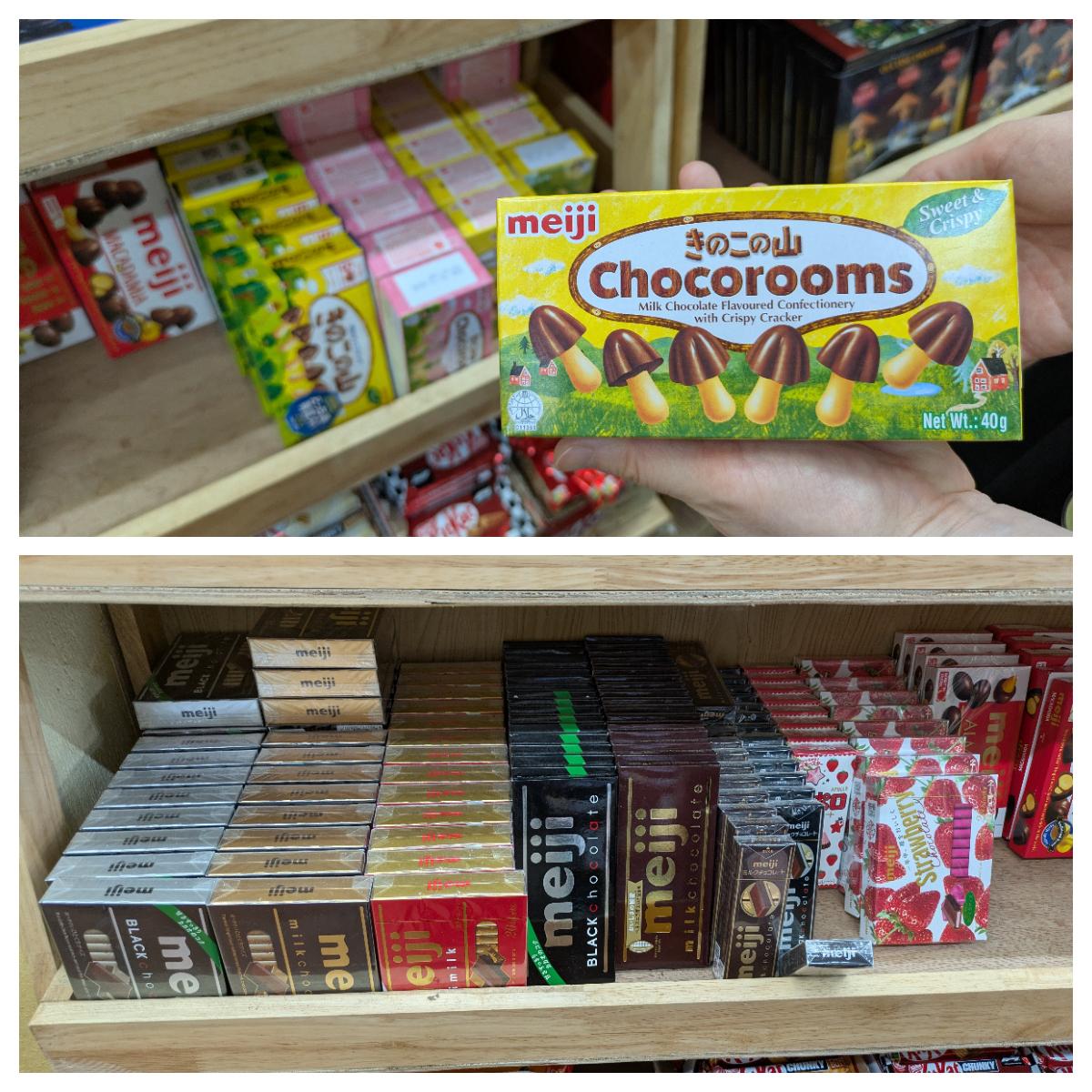 途中寄ったスーパーで。「きのこの山」が売ってる…!明治のチョコはこちらでも人気?