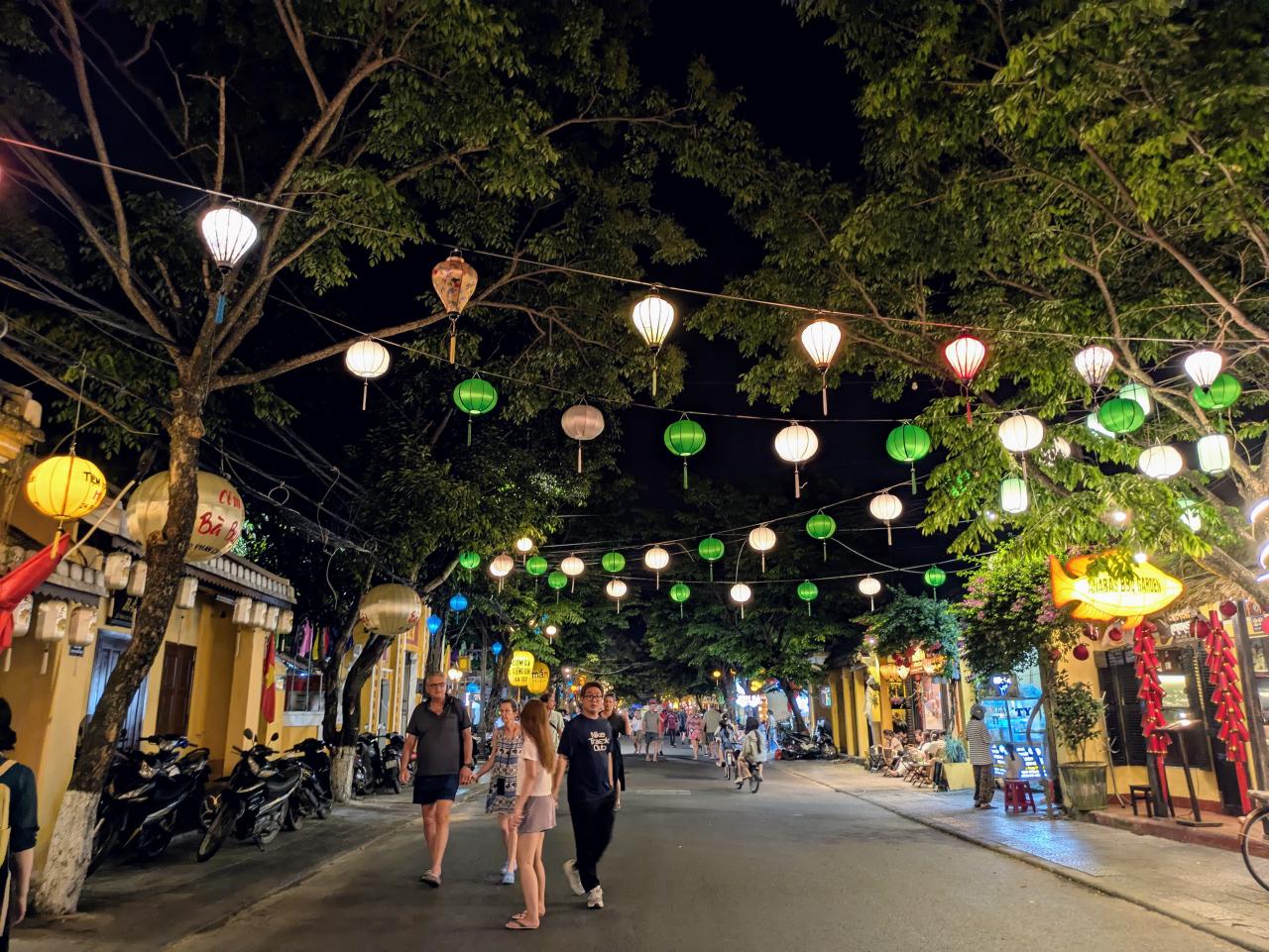 フーンフンの家のある通りをブラブラと西へ。カラフルなランタンが目を引く。