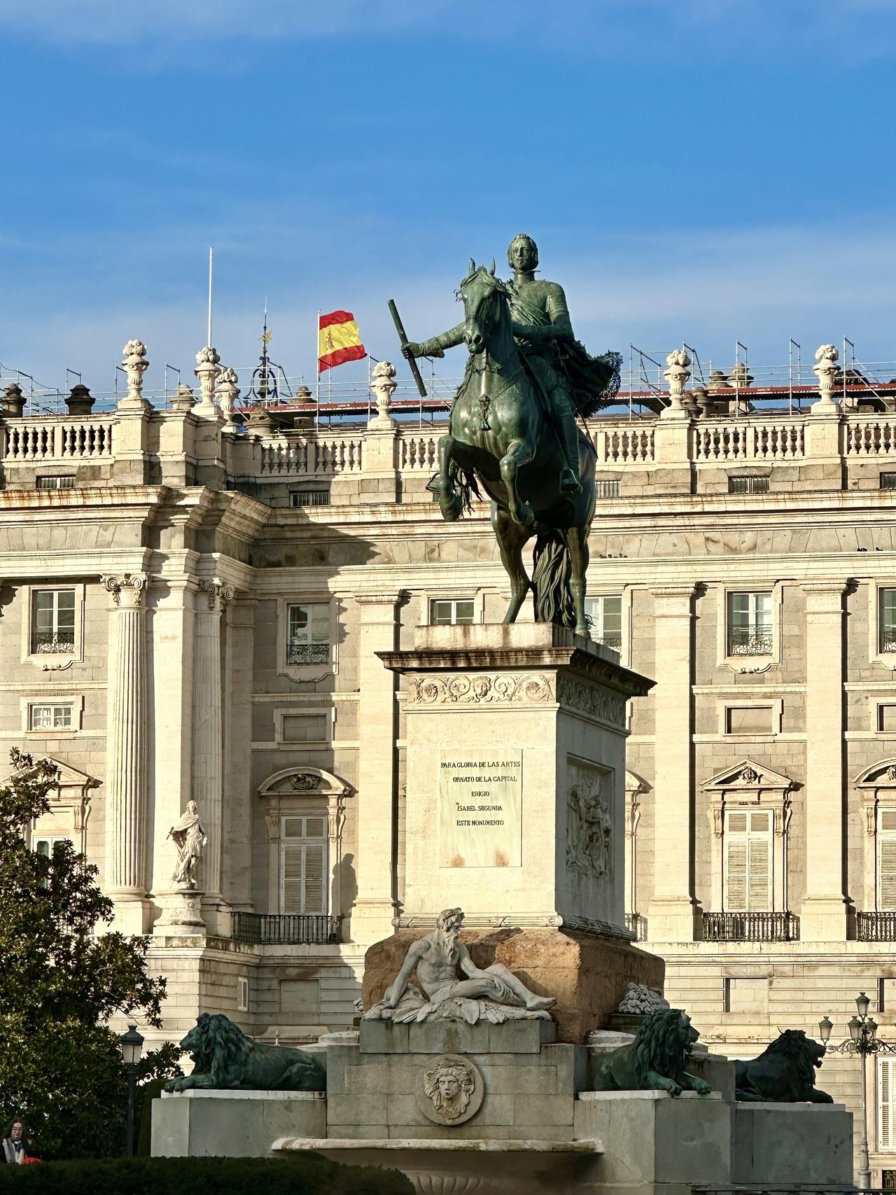 17世紀のスペイン国王フェリペ4世の騎馬像です。2本の後脚だけで立つ騎馬像ですが、ガリレオ・ガリレイに重さの配分などの助言を得たということです。
