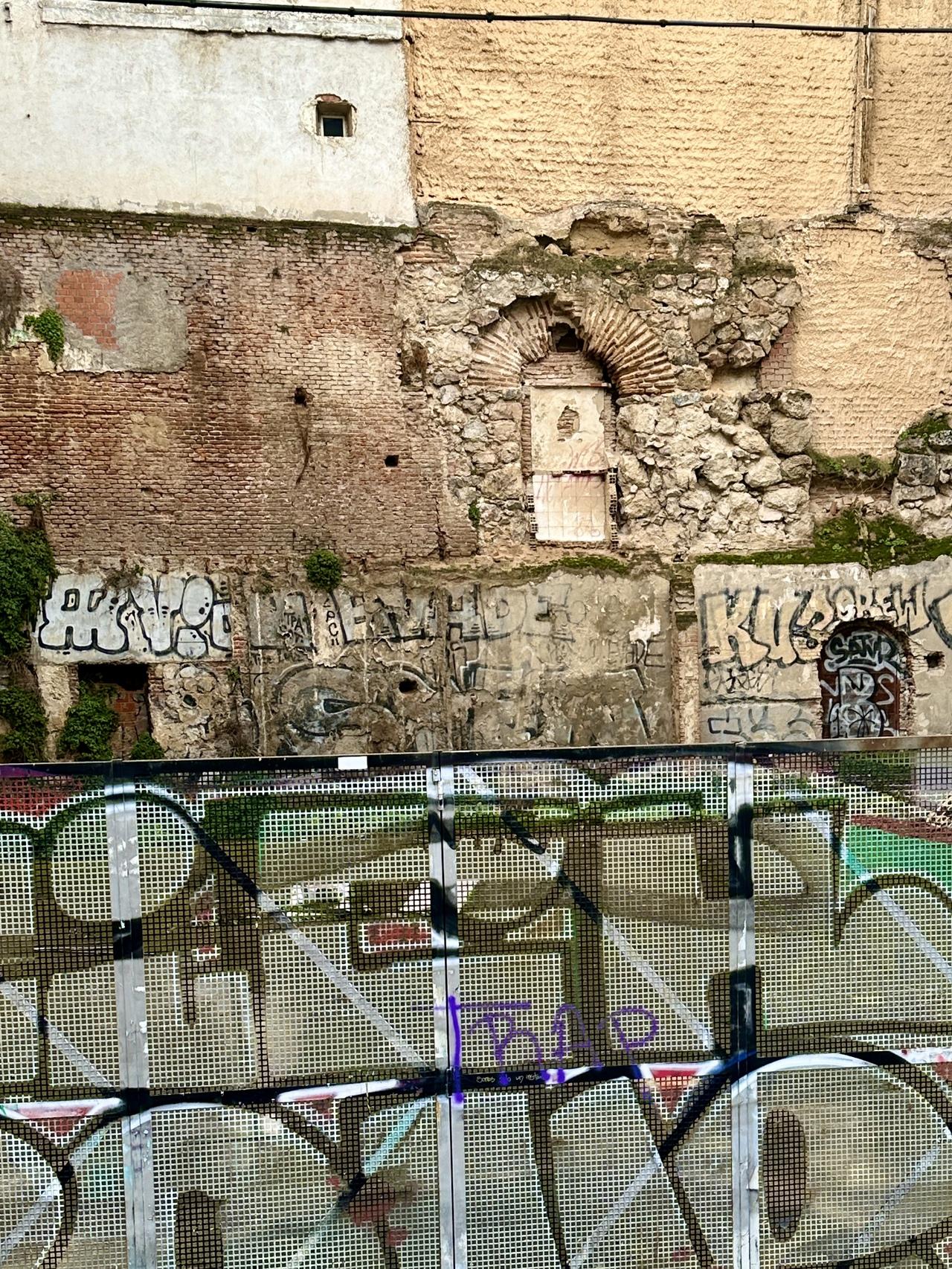 こういう落書きはよく目にしますが、この壁自体はとても古いものだそうです。