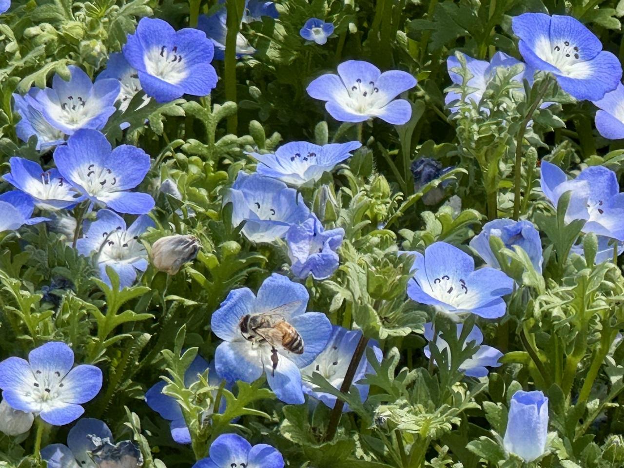 西口ひろばの丘のネモフィラは満開で見応えがあります。