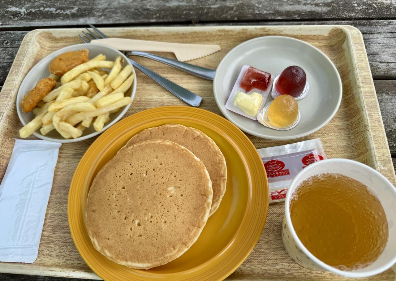 ドリンク付きの8インチの手作りピザ(1,680円)などもありますが、夕食を沢山食べるのでパンケーキセット(680円)を1つだけ頼みました。