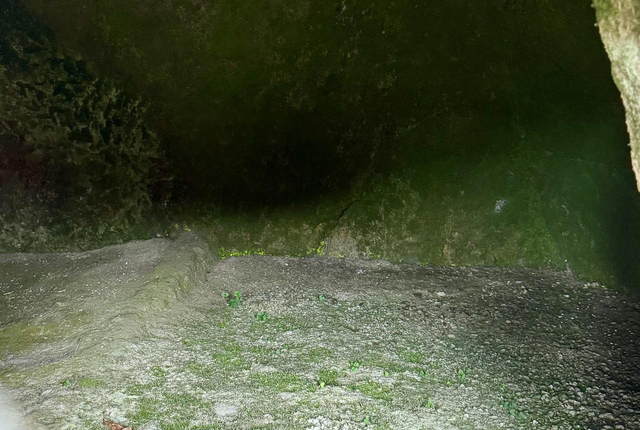 ヒカリゴケの自生地があり、覗いてみたら何となく光っているような感じでした。