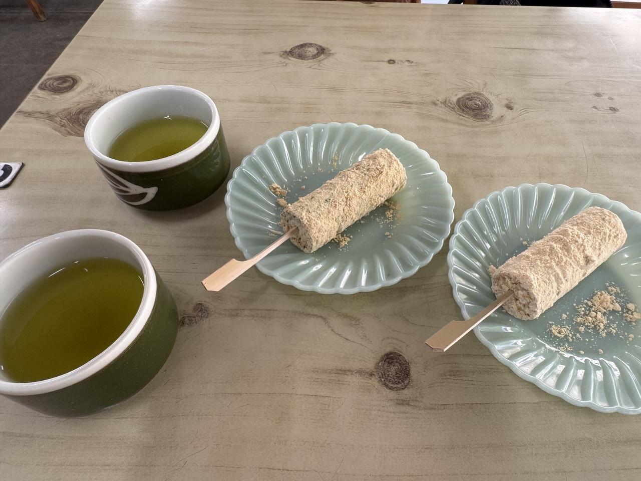 きなこ130円、抹茶味140円で1本から販売してくれ、店内で食べるとお茶も出して頂けました、