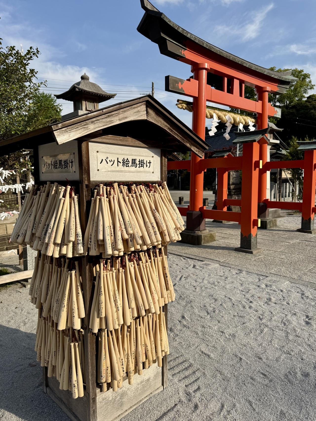 箭弓稲荷神社の箭弓は「ヤキュウ」と読むので、絵馬はバット型。