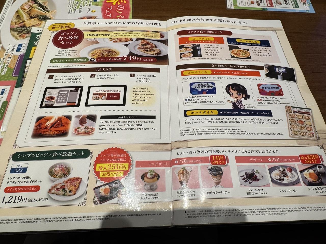 メイン料理に823円をプラスするとピザが食べ放題になります。
