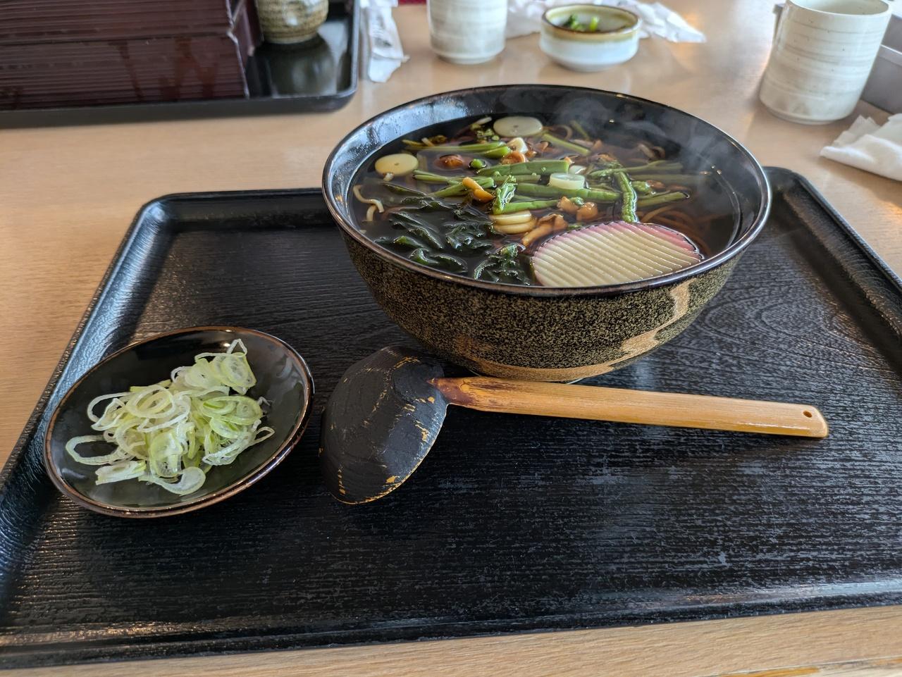 肌寒い日だったので、温かい山菜蕎麦を食べました。