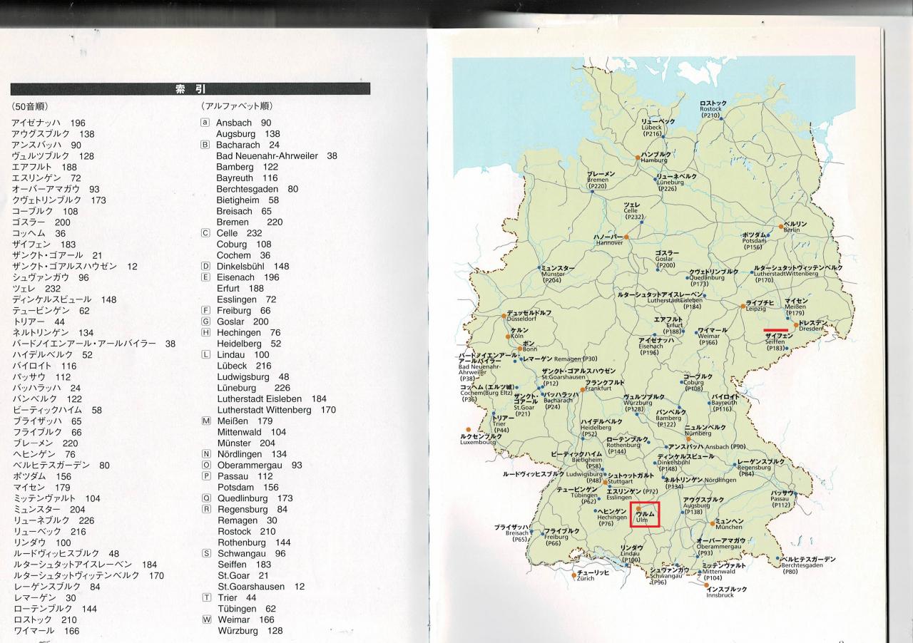 写真:ドイツの田舎町(旅名人ブックス)リストとMap・・・・田舎町という、ドイツの観光的に行くべき大小さまざまな都市を網羅している。