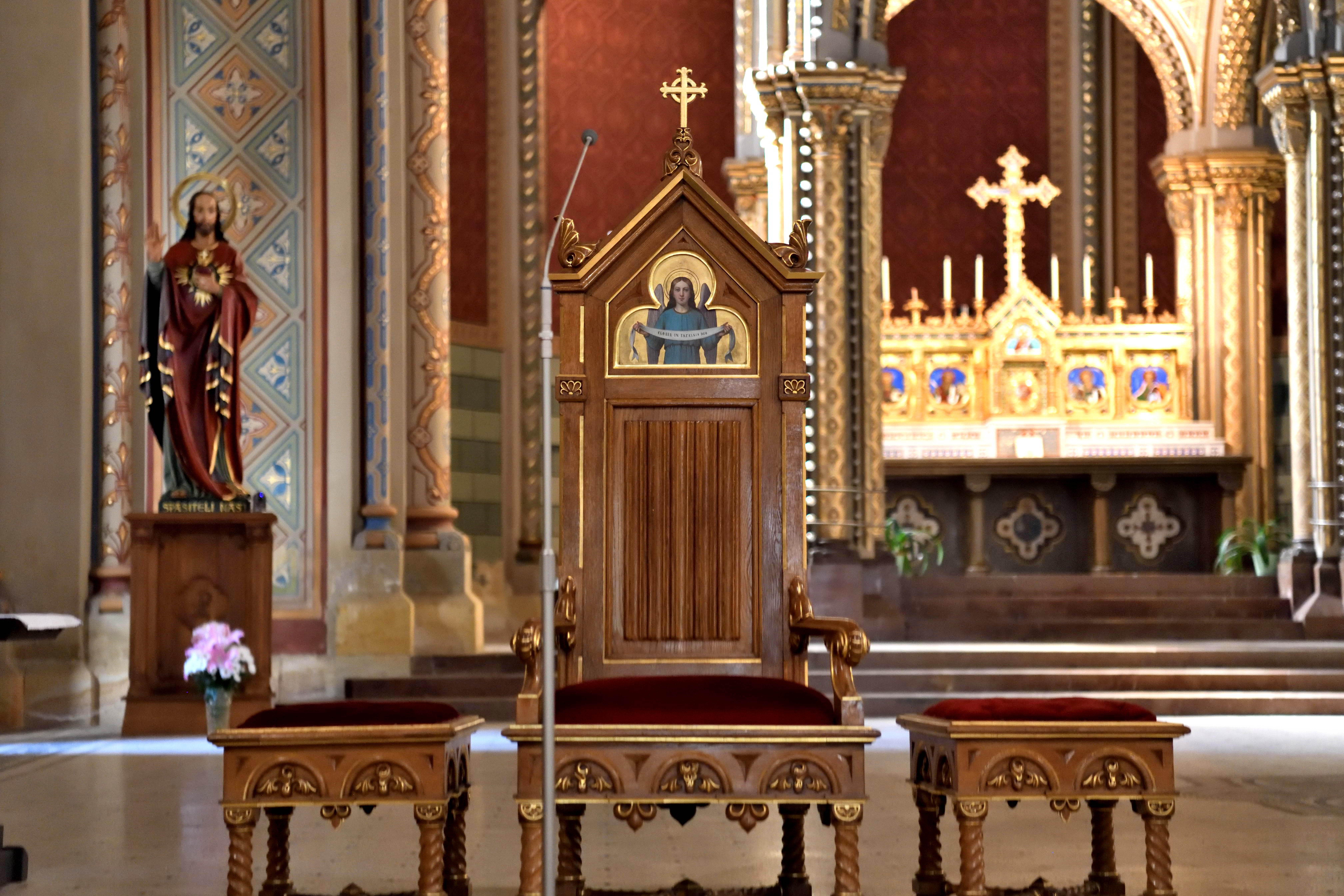 重厚な司教座と金色の祭壇が並び、堂内の中心としての存在感が際立っていました。