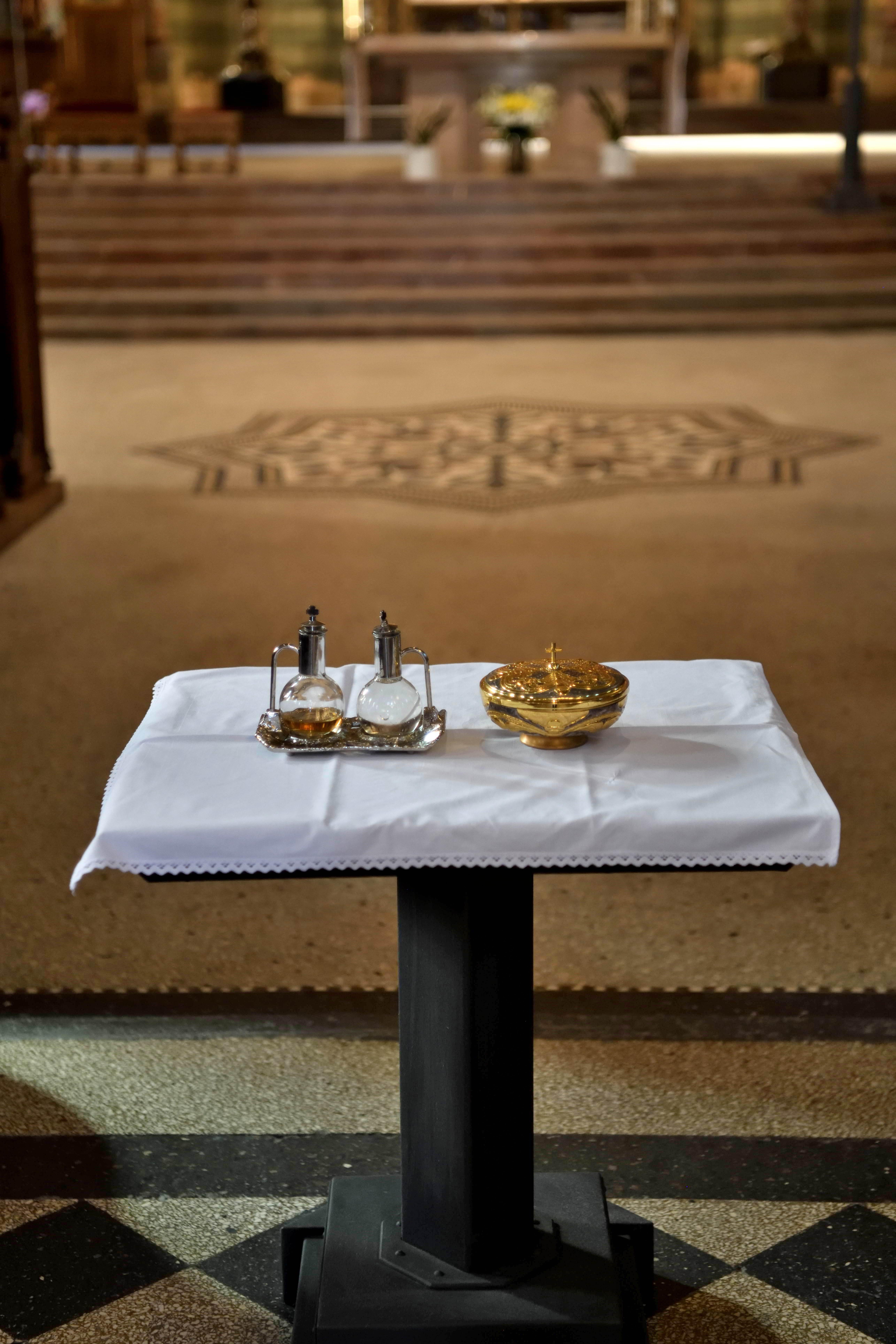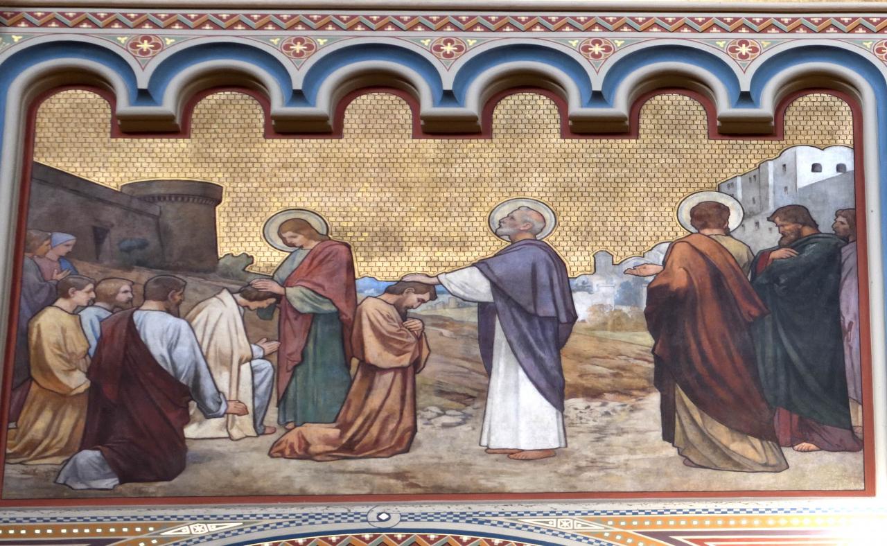 中央の司教が祝福を授ける場面が丁寧に描かれ、周囲の司祭たちが静かに見守る様子から、厳かな儀式の空気が伝わってきました。