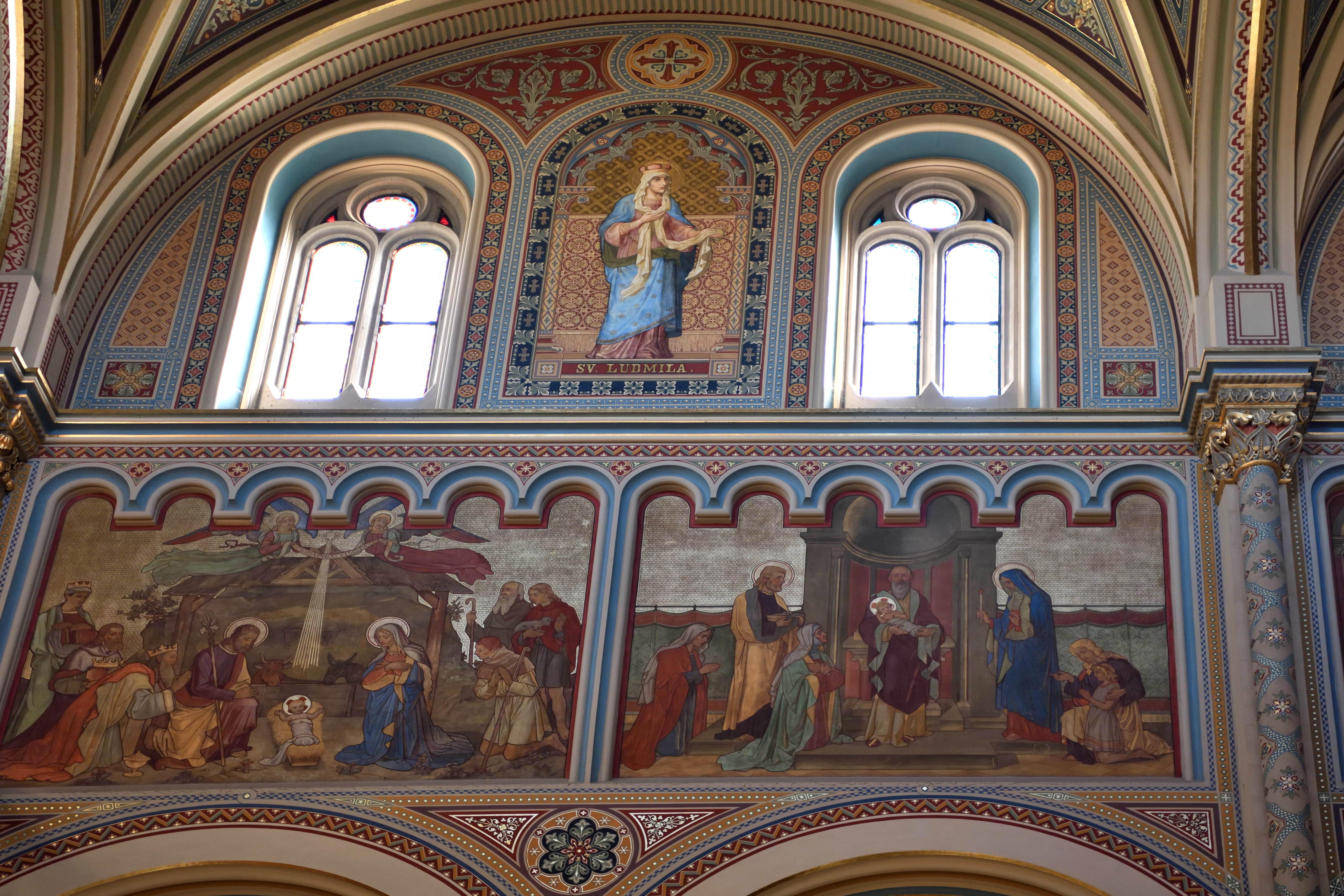 ここにはボヘミア(今のチェコ)の伝説的な女性聖人と、イエス様の誕生にまつわる物語が描かれています。