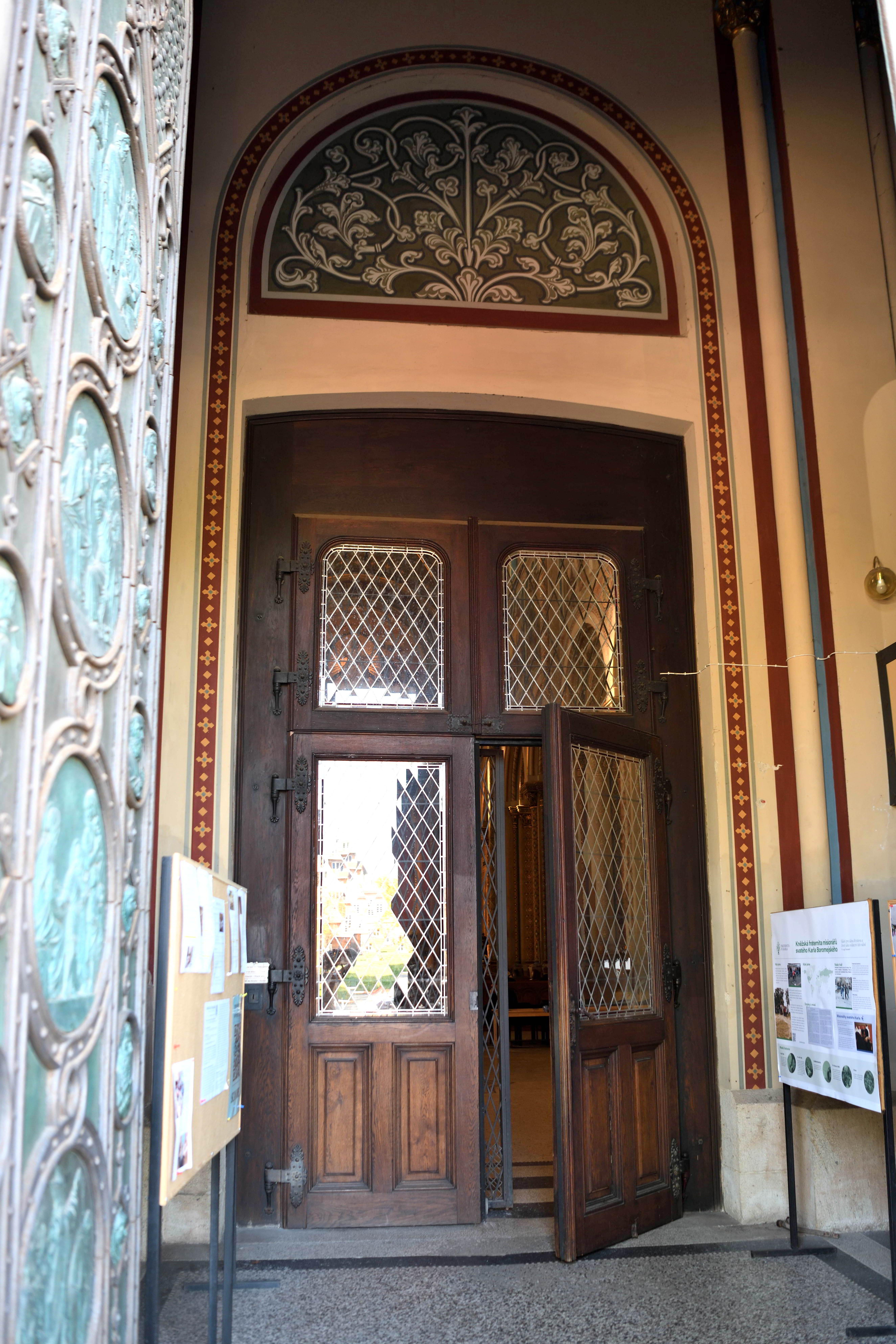 細かな彫刻が施された大きな扉は、まるで大切な宝物を守っているかのようです。 -