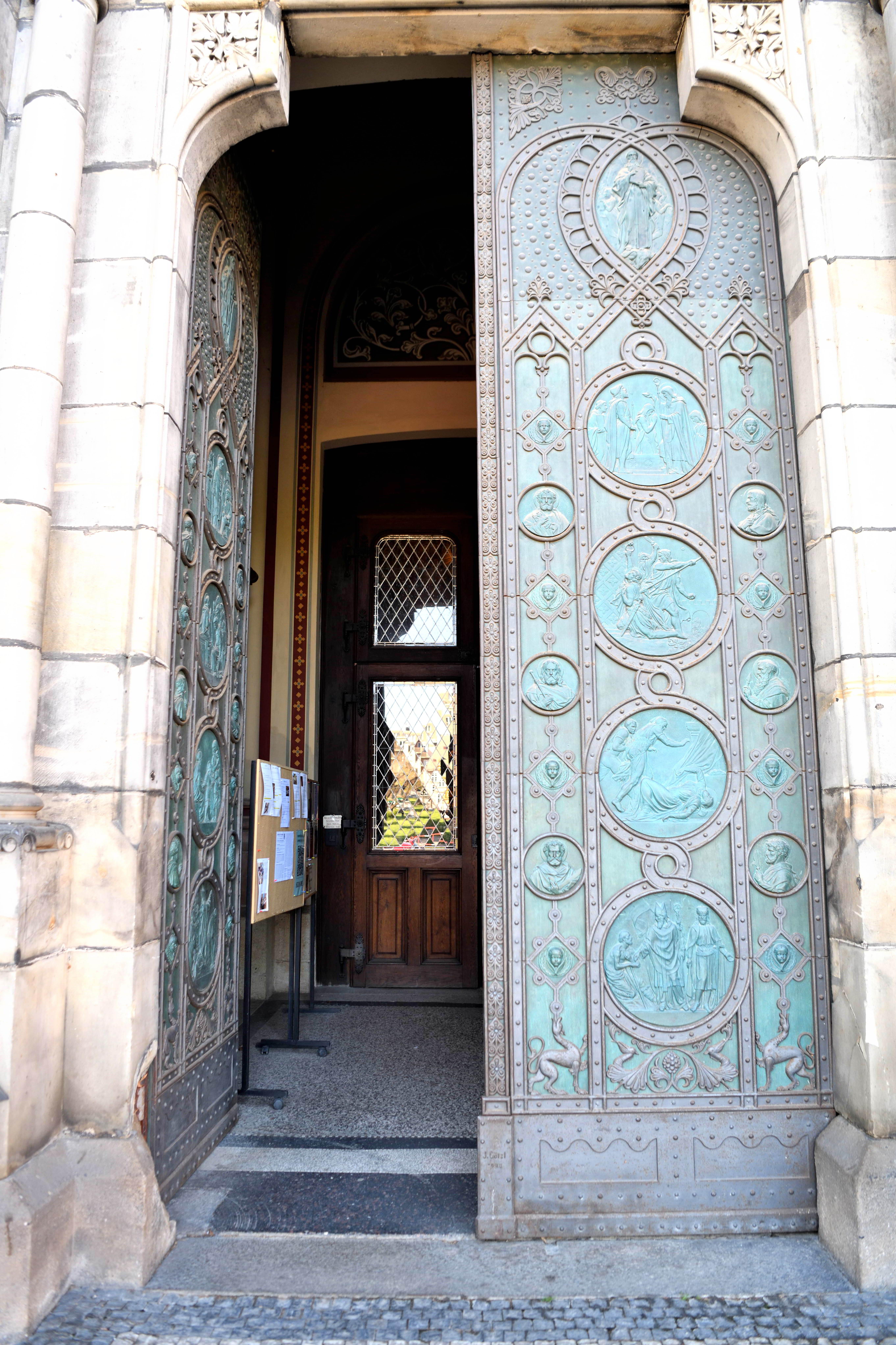外へ出て振り返ると、そこには立派な青銅の扉が佇んでいました。