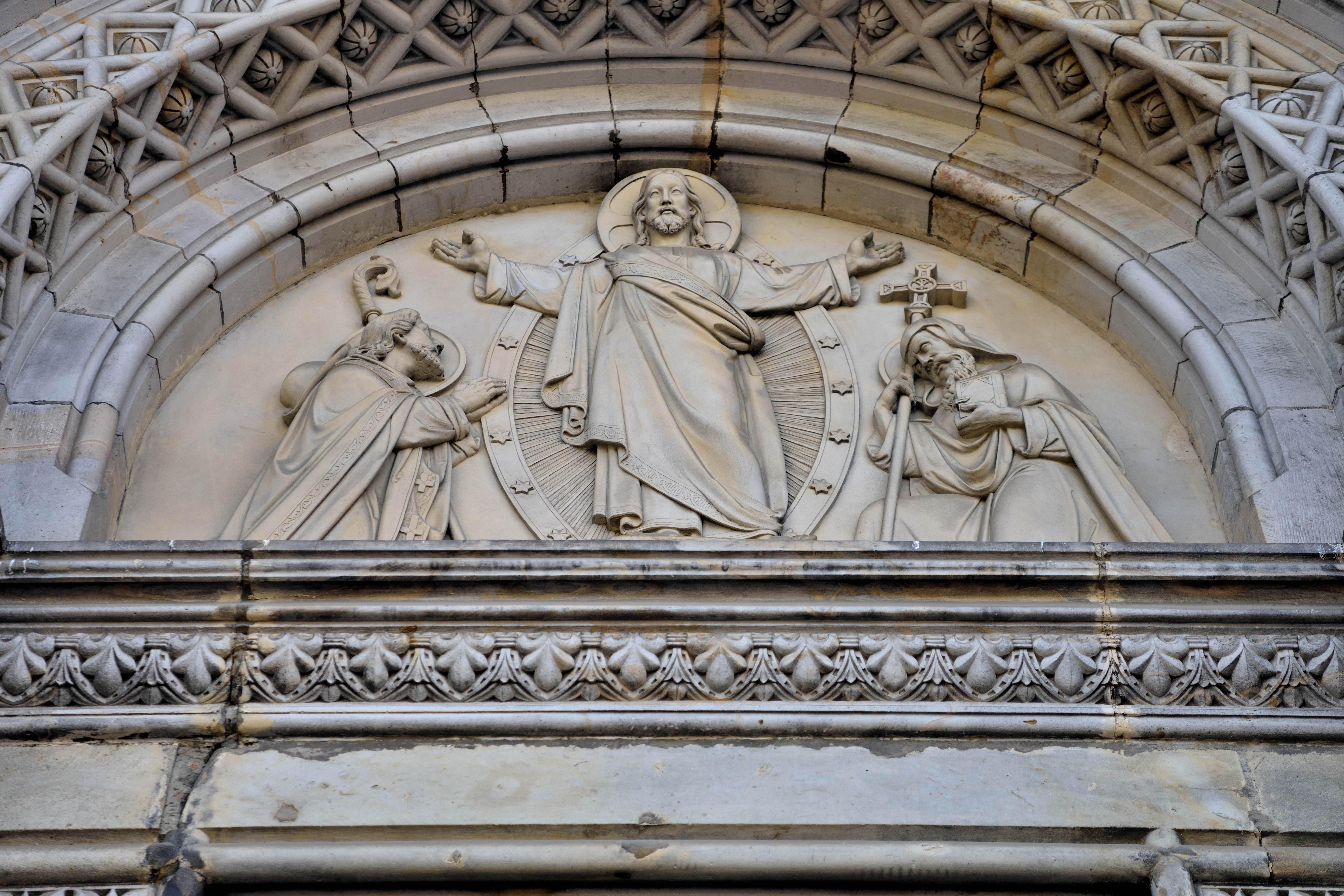 教会の入り口の上には、立派な彫刻が並んでいました。
