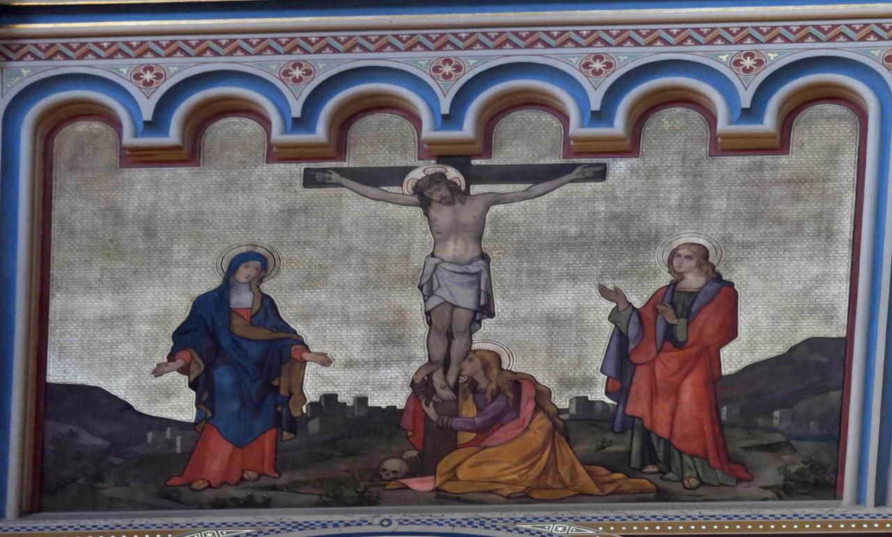 壁面には、イエスが十字架にかけられた悲しい場面も描かれていました。