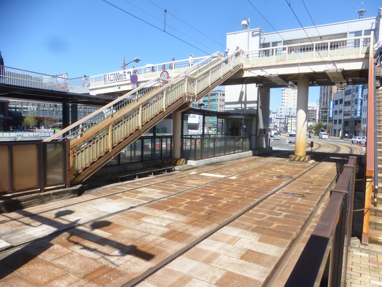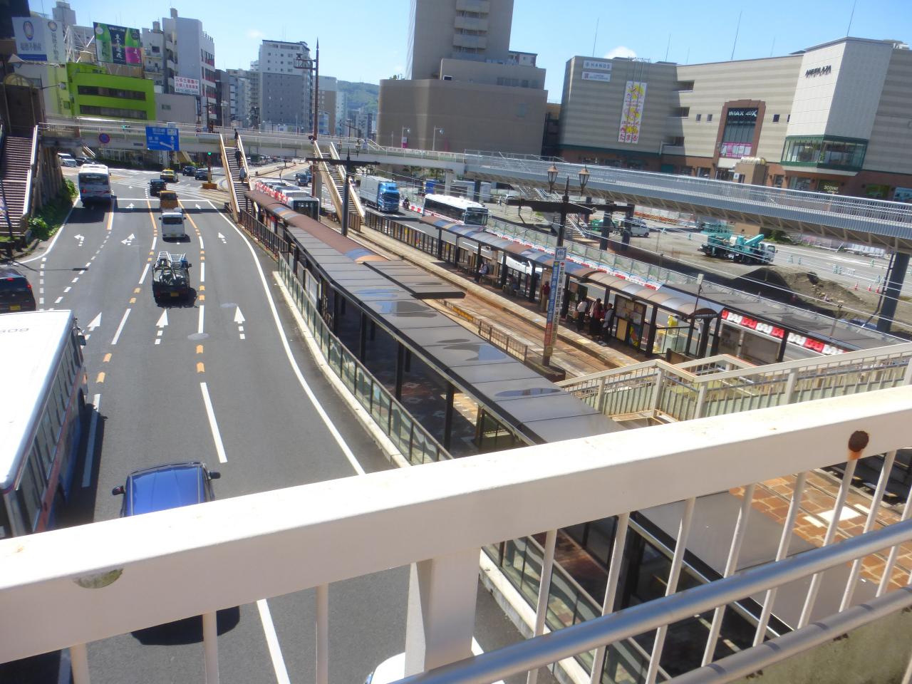 路面電車の長崎駅前電停やJR長崎駅方面につながっている陸橋です。