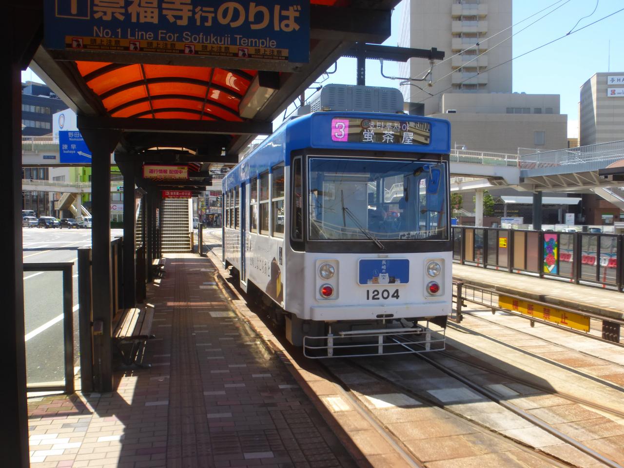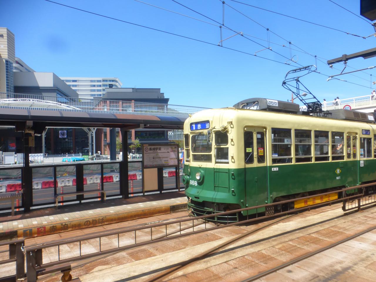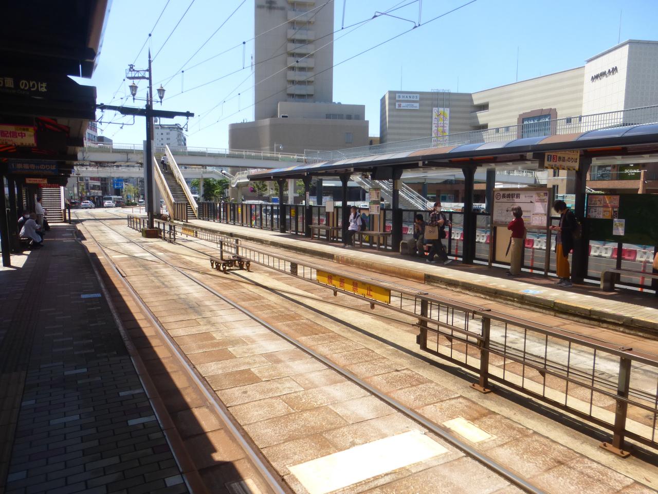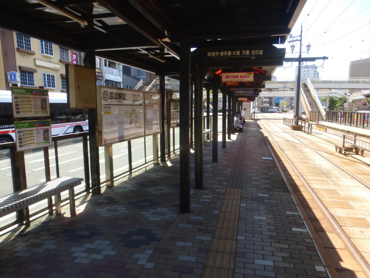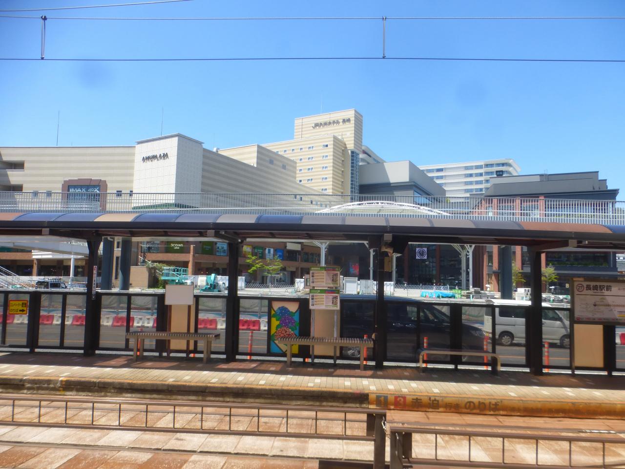 路面電車の長崎駅前電停が見えています。