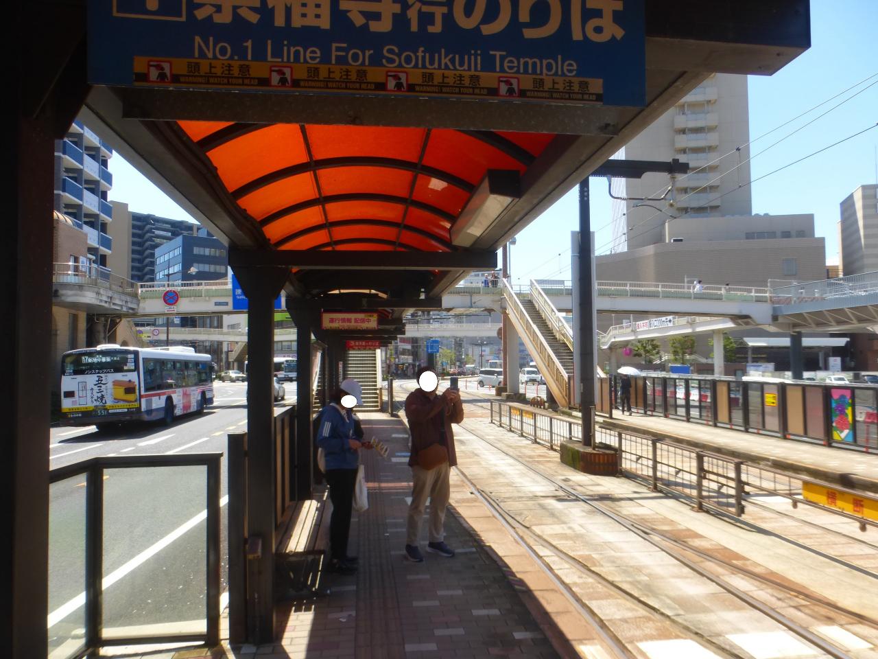 観光通り電停に向かうのここで待ちます。