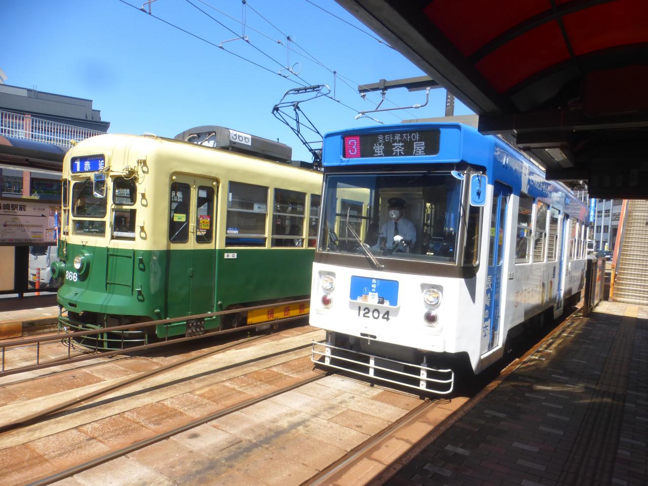 人が多くなって長崎駅前電停では撮れなかったので、観光通り電停で降りた後に撮りました。