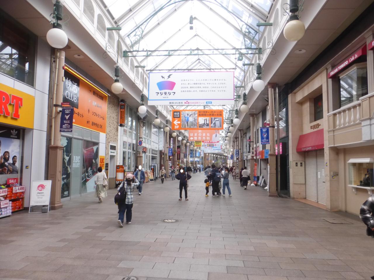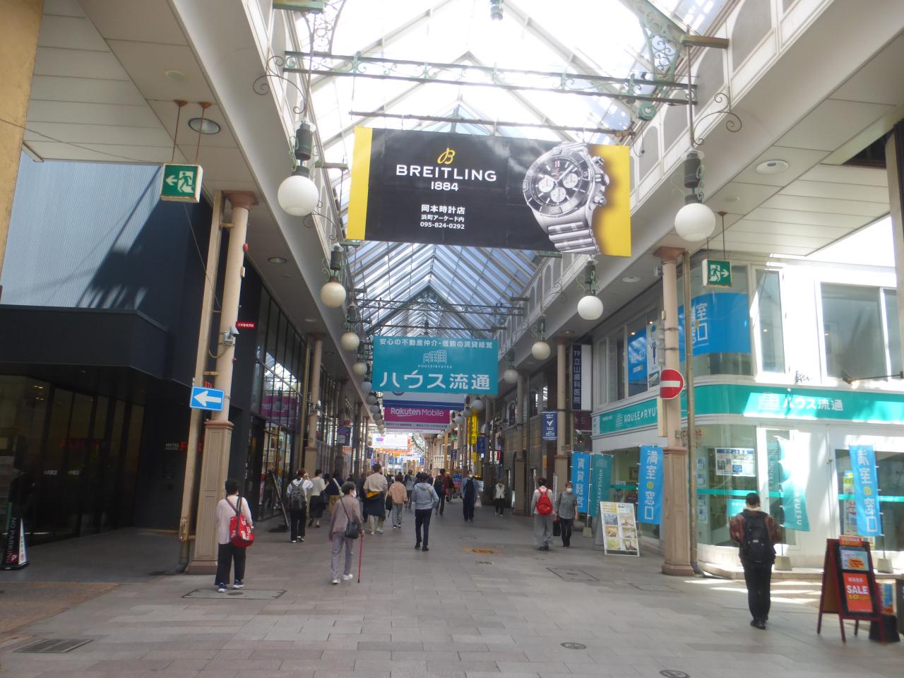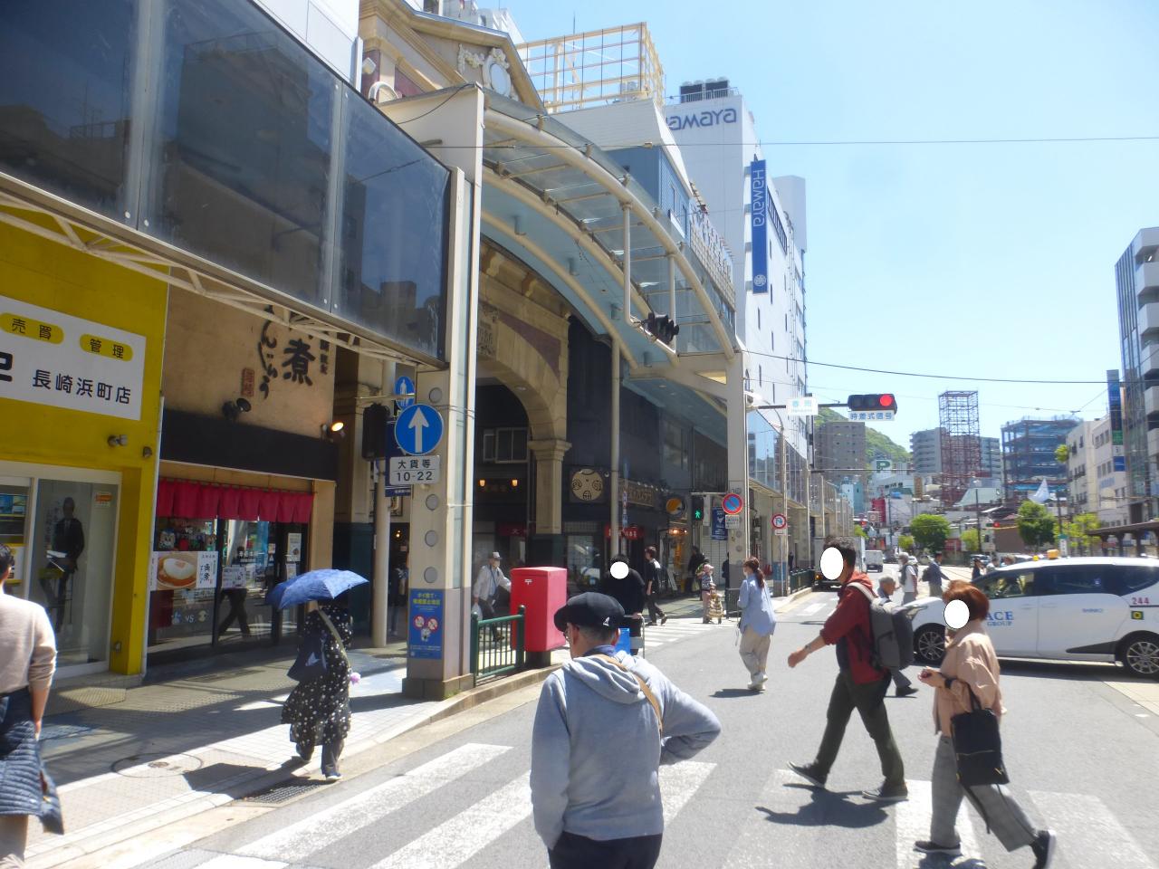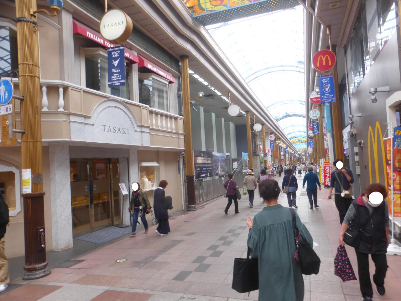 この日泊まる、「Tabi and. 長崎(旅と長崎)」へは、このアーケード街を最後まで真っ直ぐ行き、本古川通りに出たら、右に行くと比較的直ぐです。