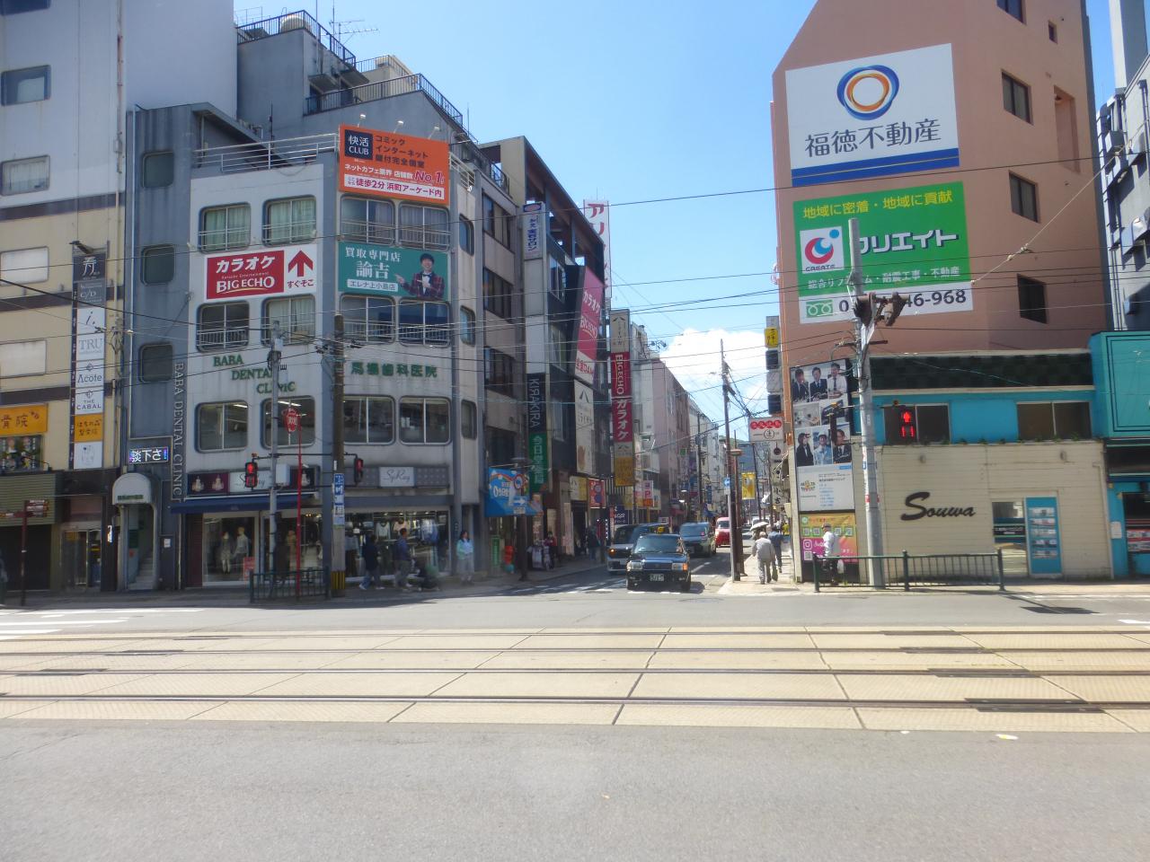 旅サラダで、本田響矢が来ていたレモンラーメンがある店(麺也オールウェイズ 万屋店)の外観が見たいので、思案橋電停方向に向かいます。