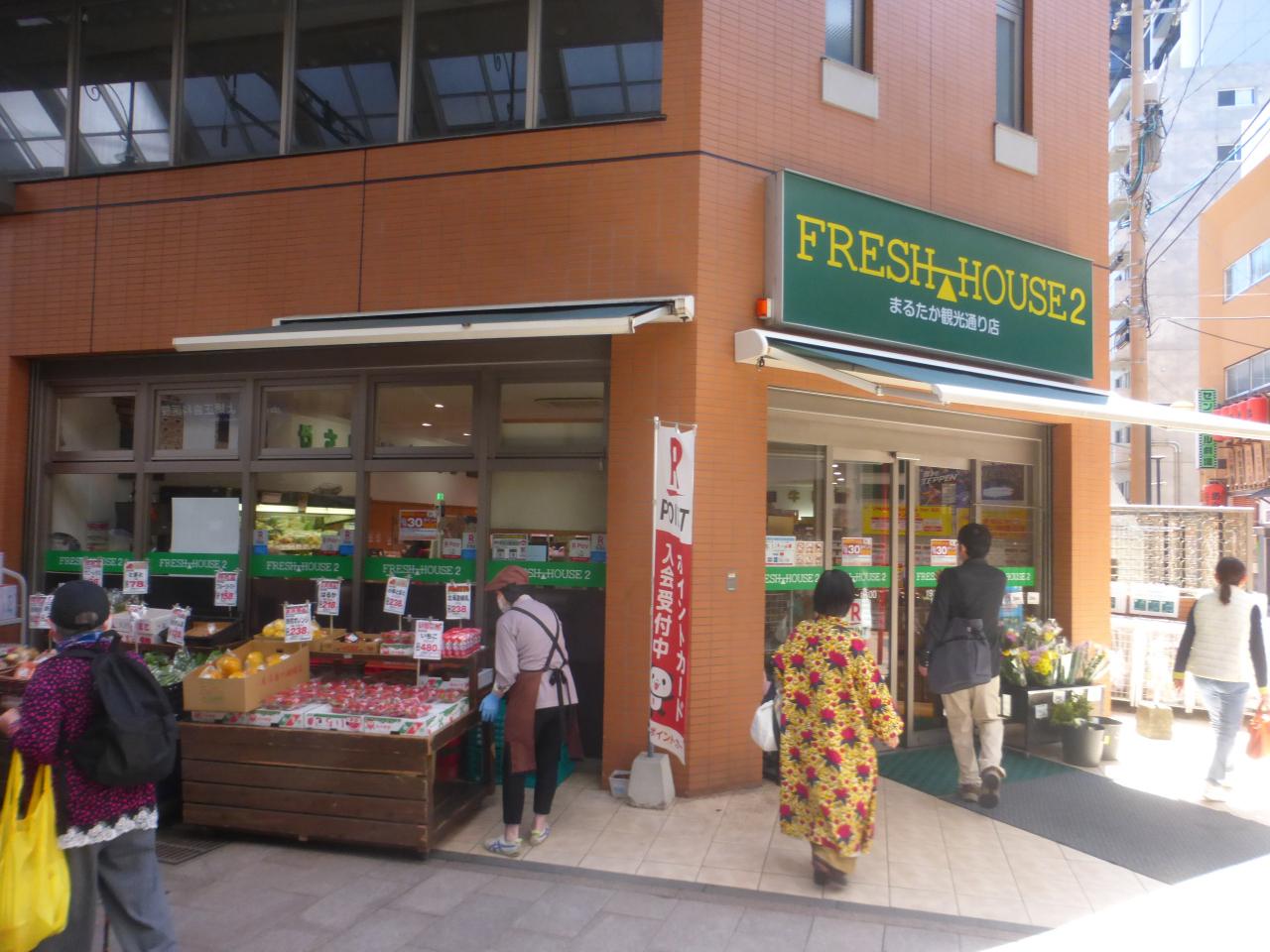 ミニスーパーマーケット(フレッシュハウスまるたか観光通り店)がありました。