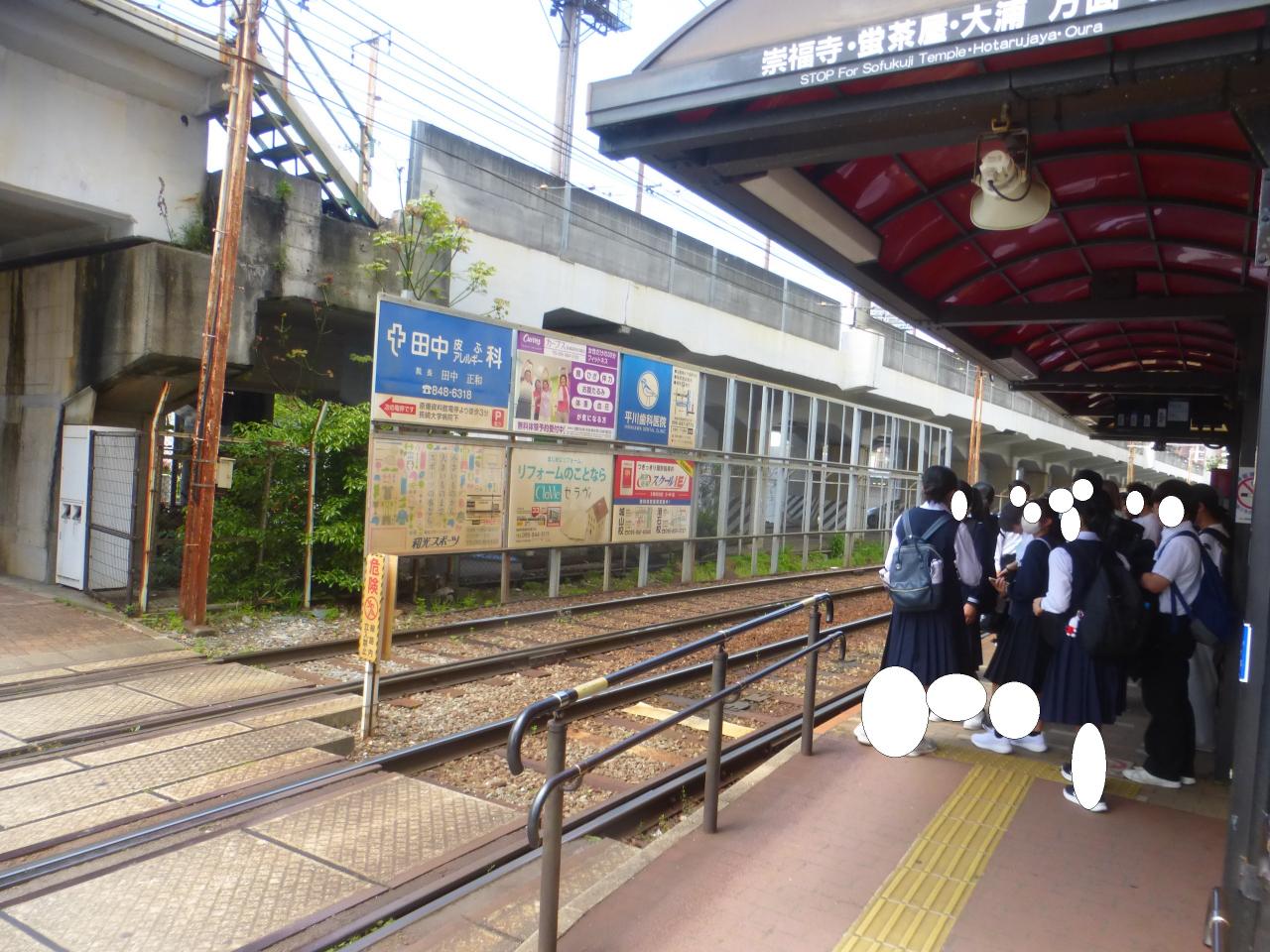 中学生団体の半分位は、蛍茶屋行きの路面電車に乗るようです。 -