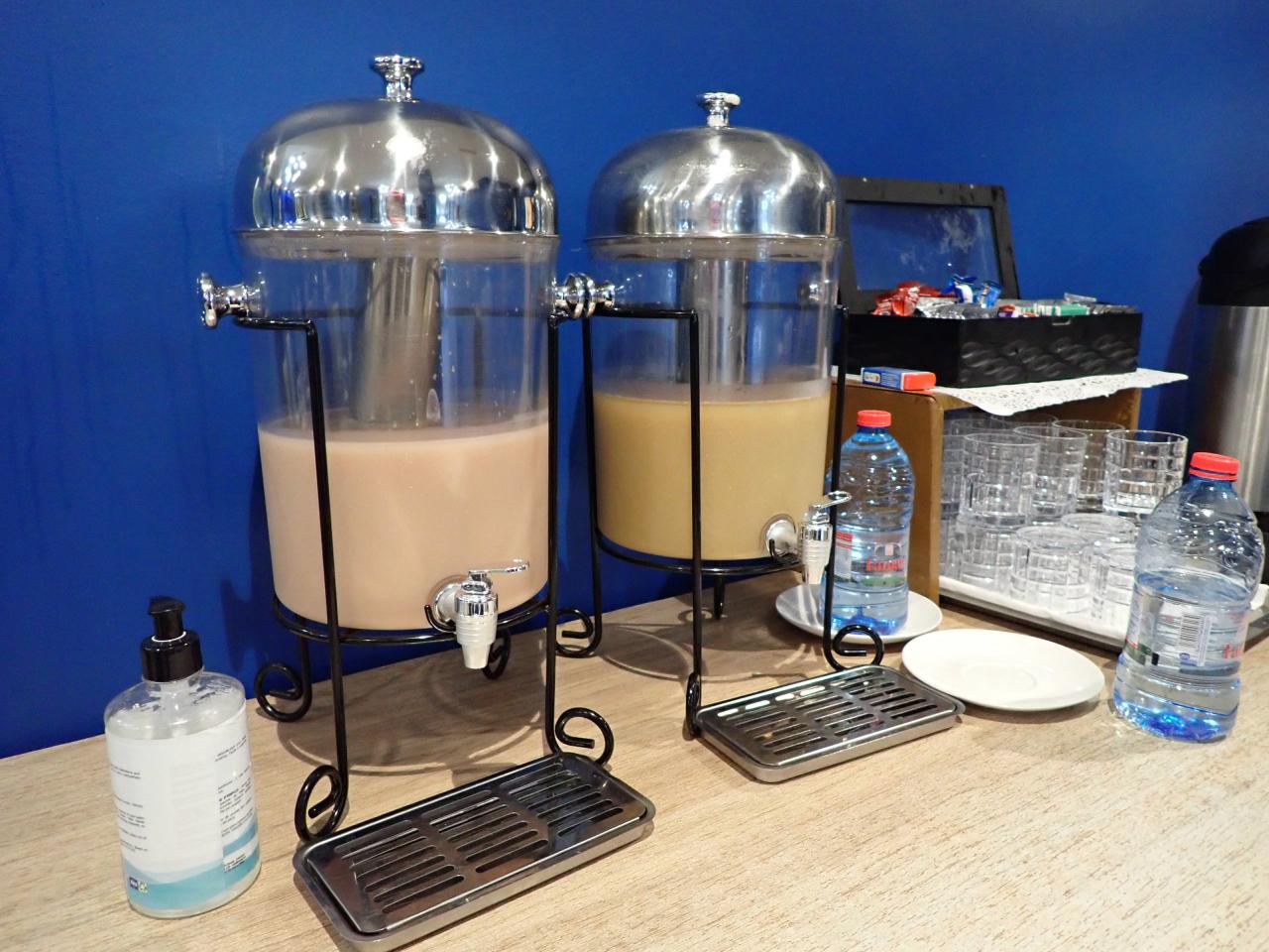 同じような色に見えるジュースサーバー、左はパイナップル、右側はジンジャーでした -