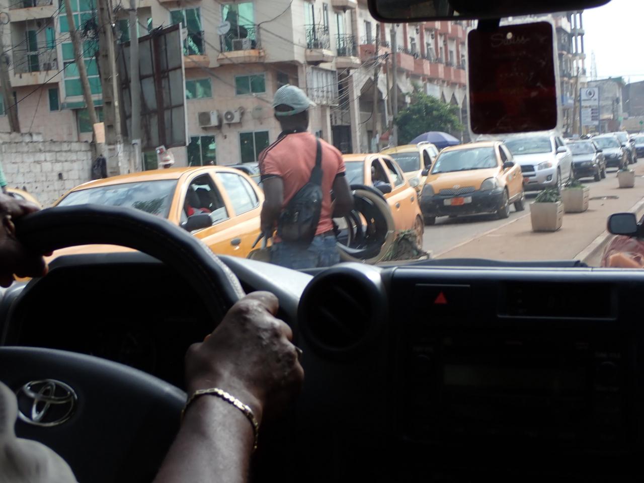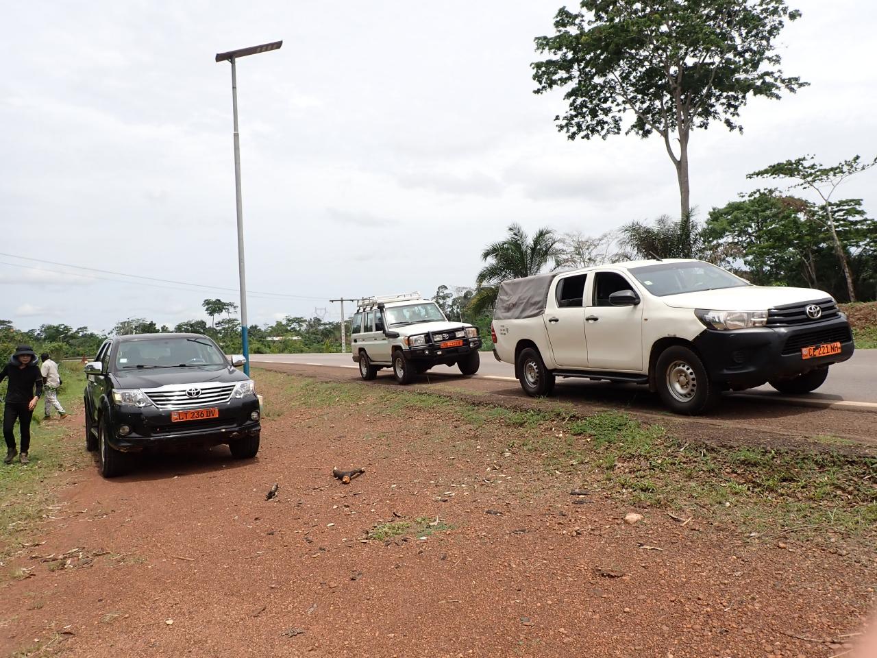 ランクル系の4WD3台に分乗してヤウンデを出発。舗装道路を東へと走り、アボンバンの街を目指します。