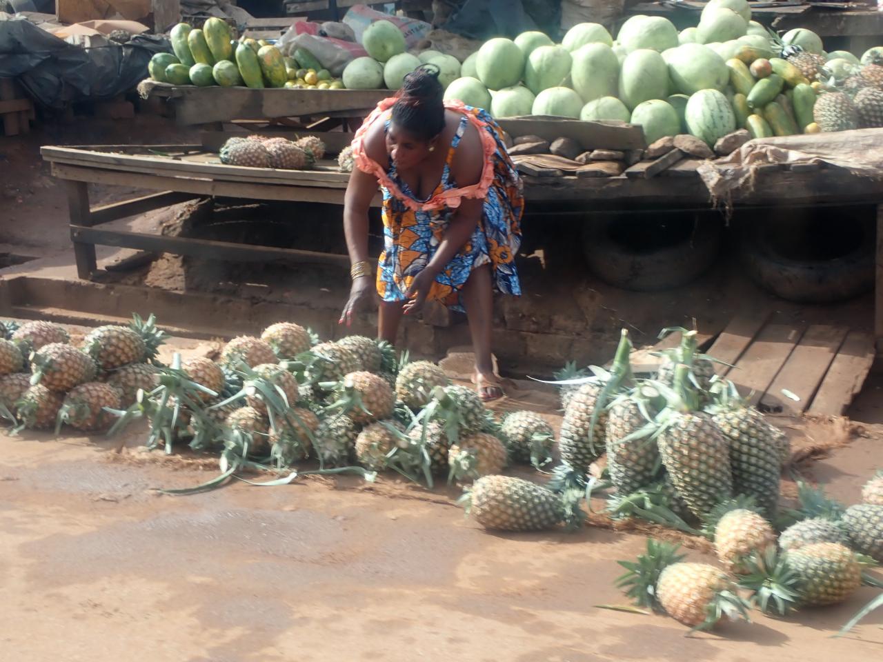 道端でキャンプ用の食糧のパイナップルお買い上げ