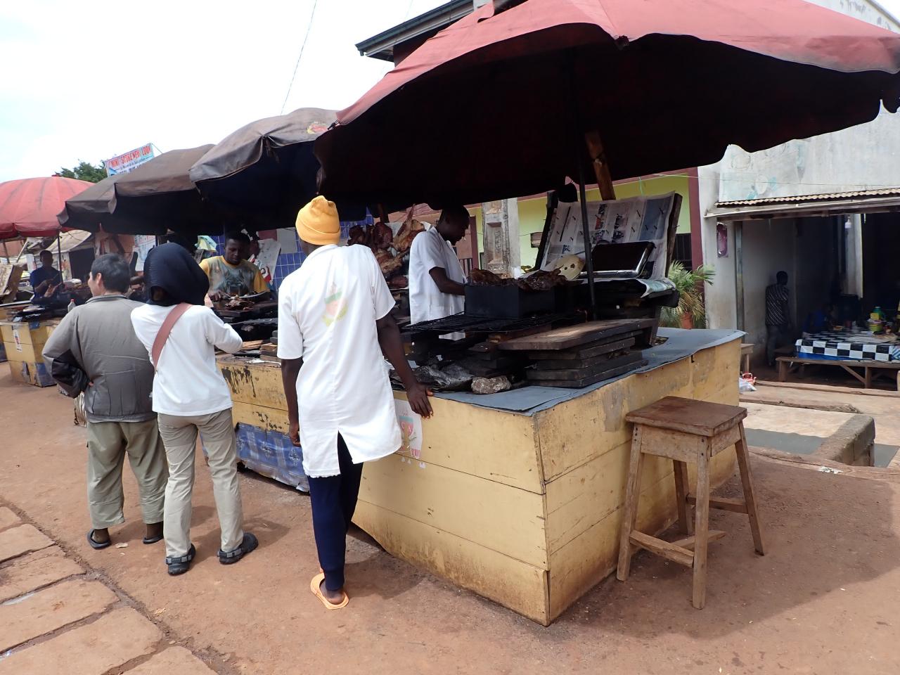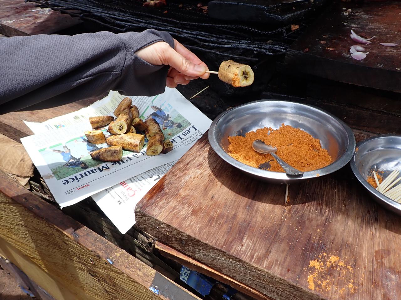 橋の袂では屋台のおばちゃんがマニヨック(キャッサバを発酵させて作る)を試食させてくれました