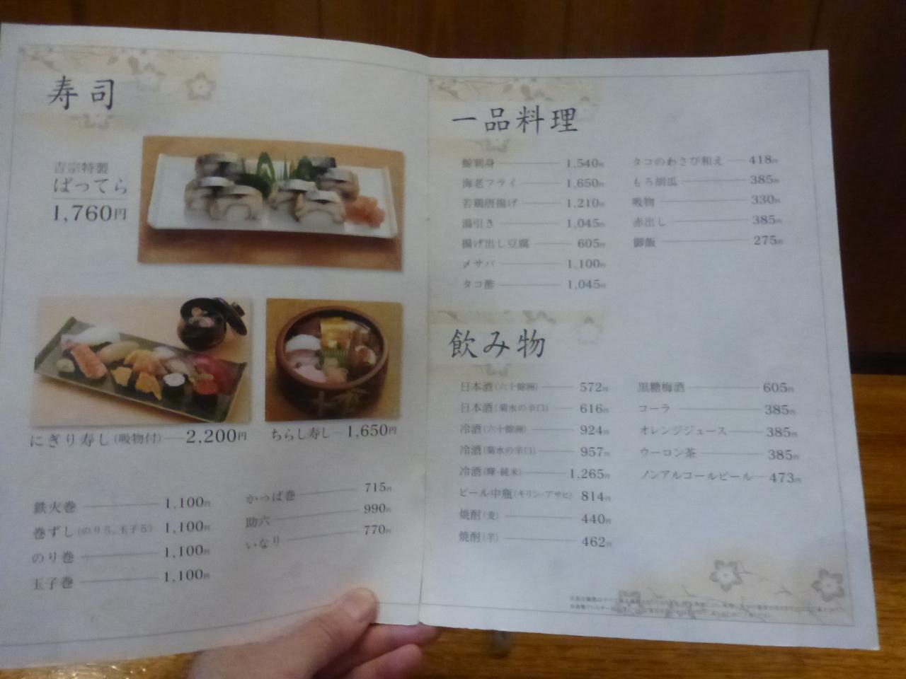 寿司、一品料理、飲み物です。