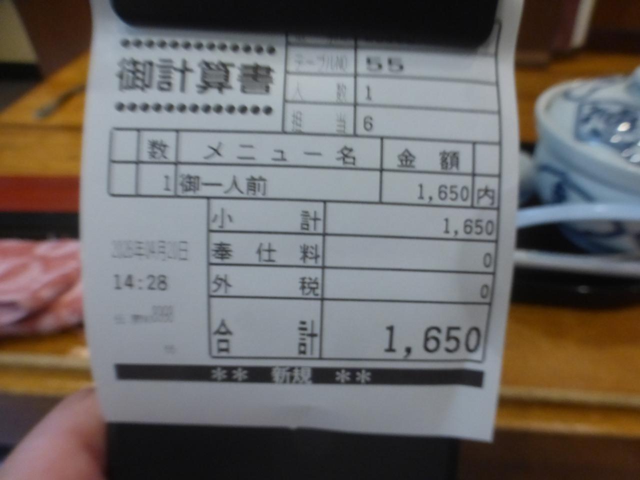 御一人前は、1,650円です。