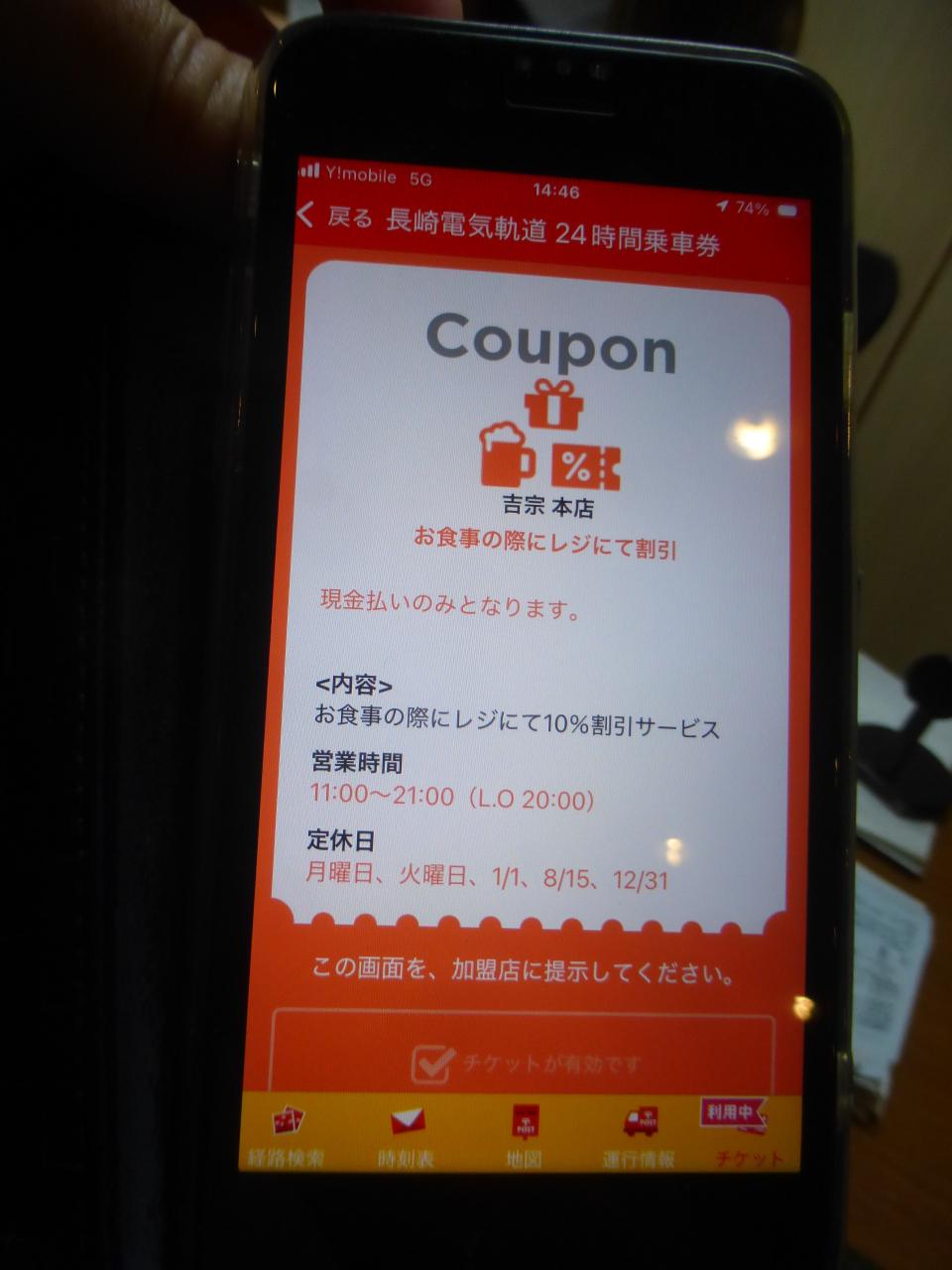なお、長崎路面電車の1日乗車券(紙、WEBとも)、WEB24時間乗車券があると、10%引きになります。