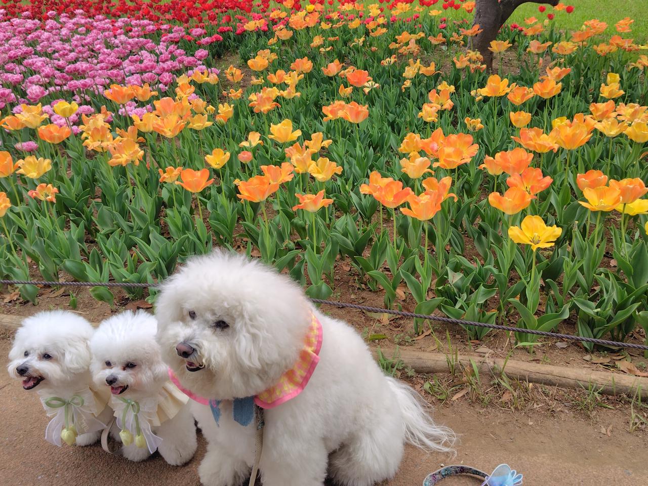 素晴らしいです。ワンちゃんとチューリップ🌷も、すごく合いますね。