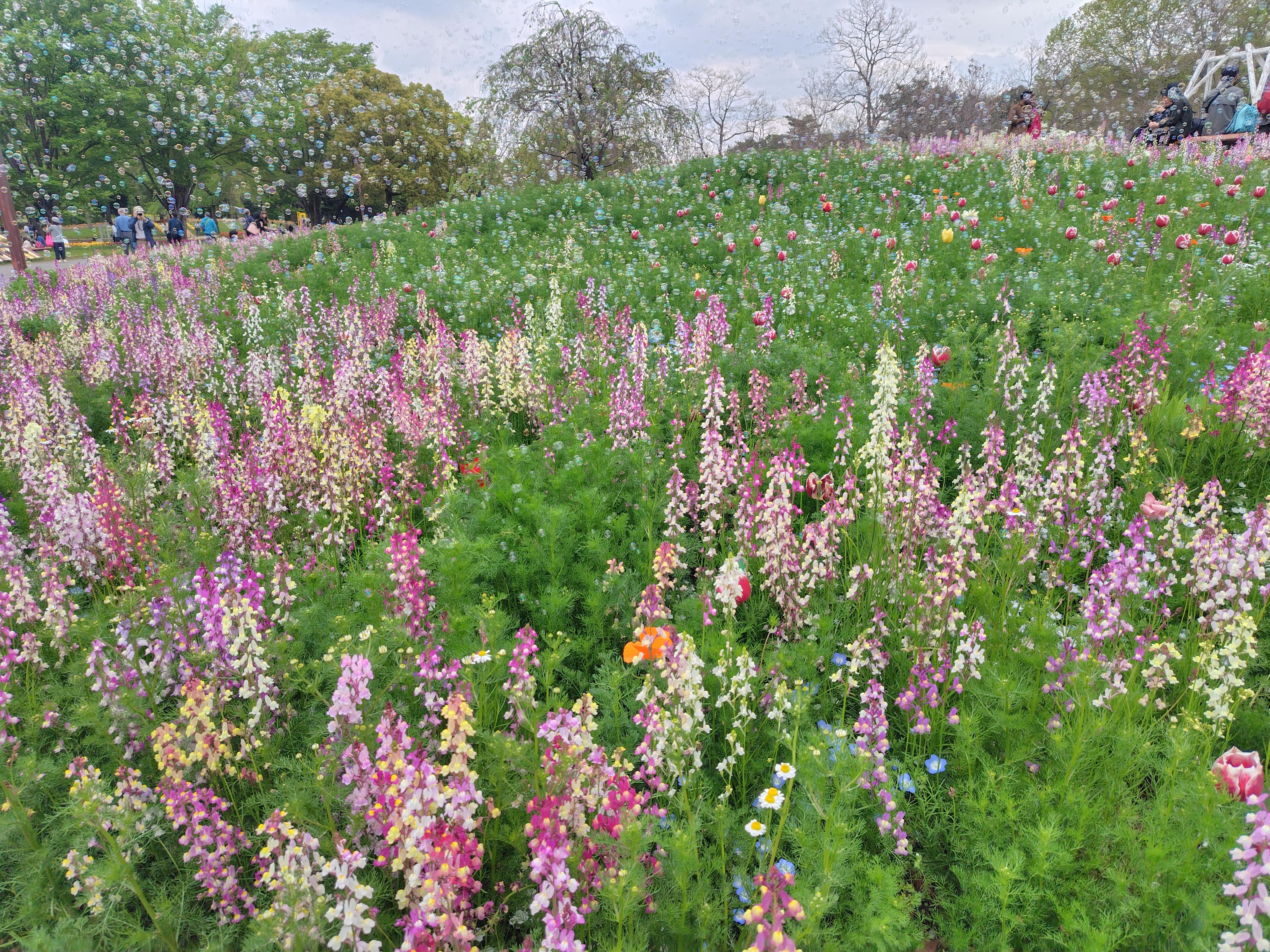 撮影会をしてるグループの方がシャボン玉を飛ばしてた。綺麗~