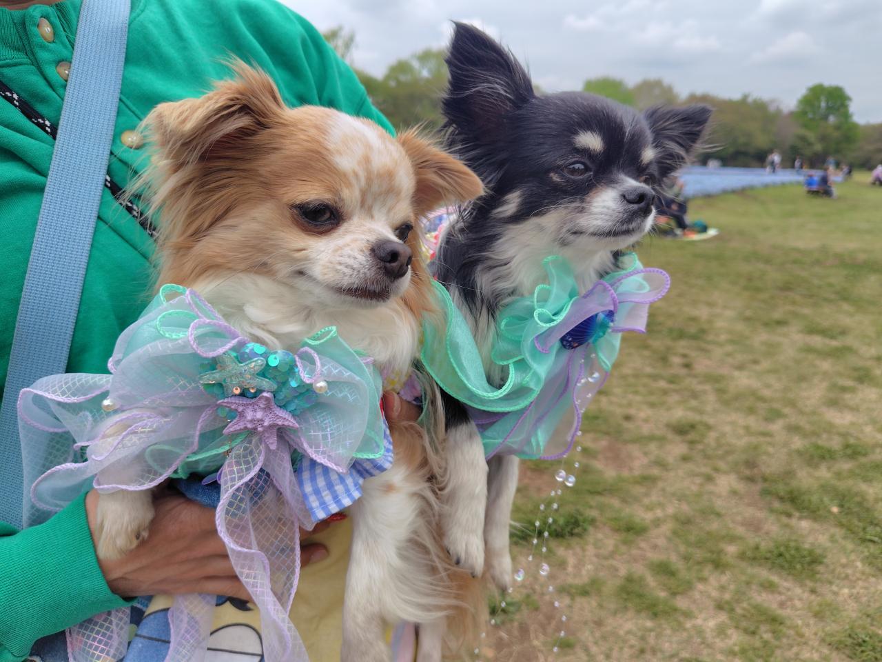 他にも多くのワンちゃんが着飾っていておしゃれね。