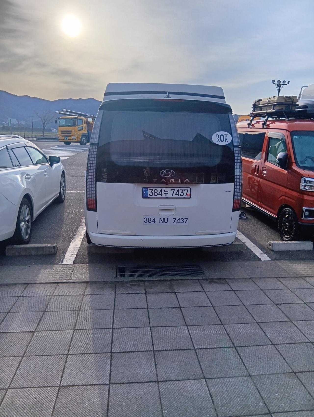 途中道の駅にて韓国からの車中泊してる車を発見・・・