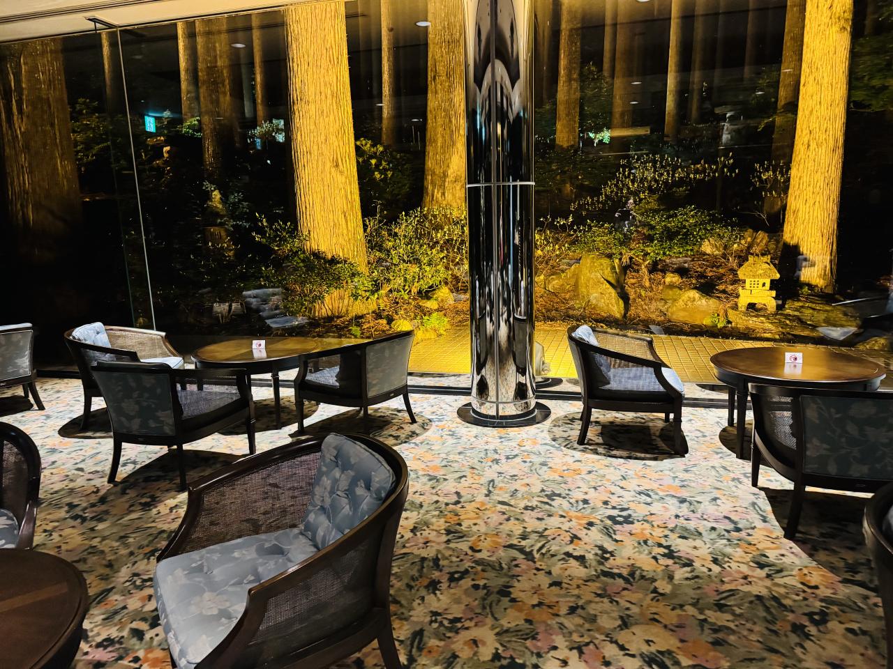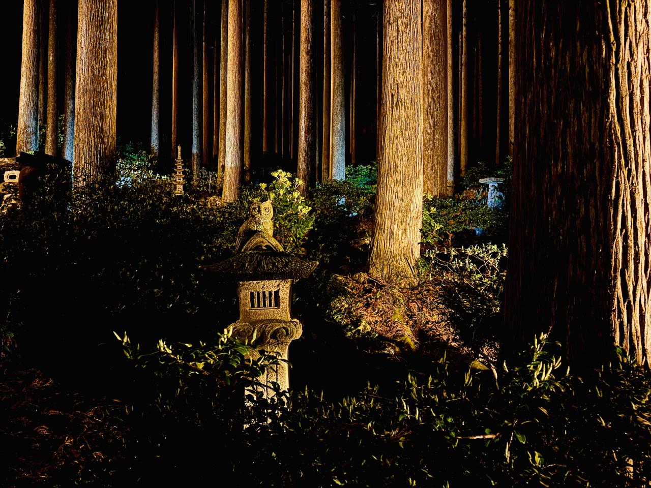 風呂上り 幻想的な杉林の夜景を見ながら 紅茶を頂く -
