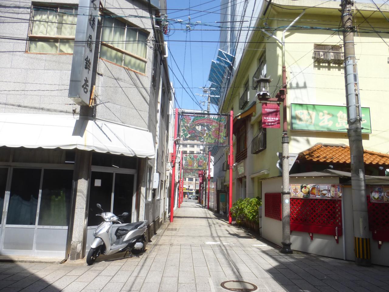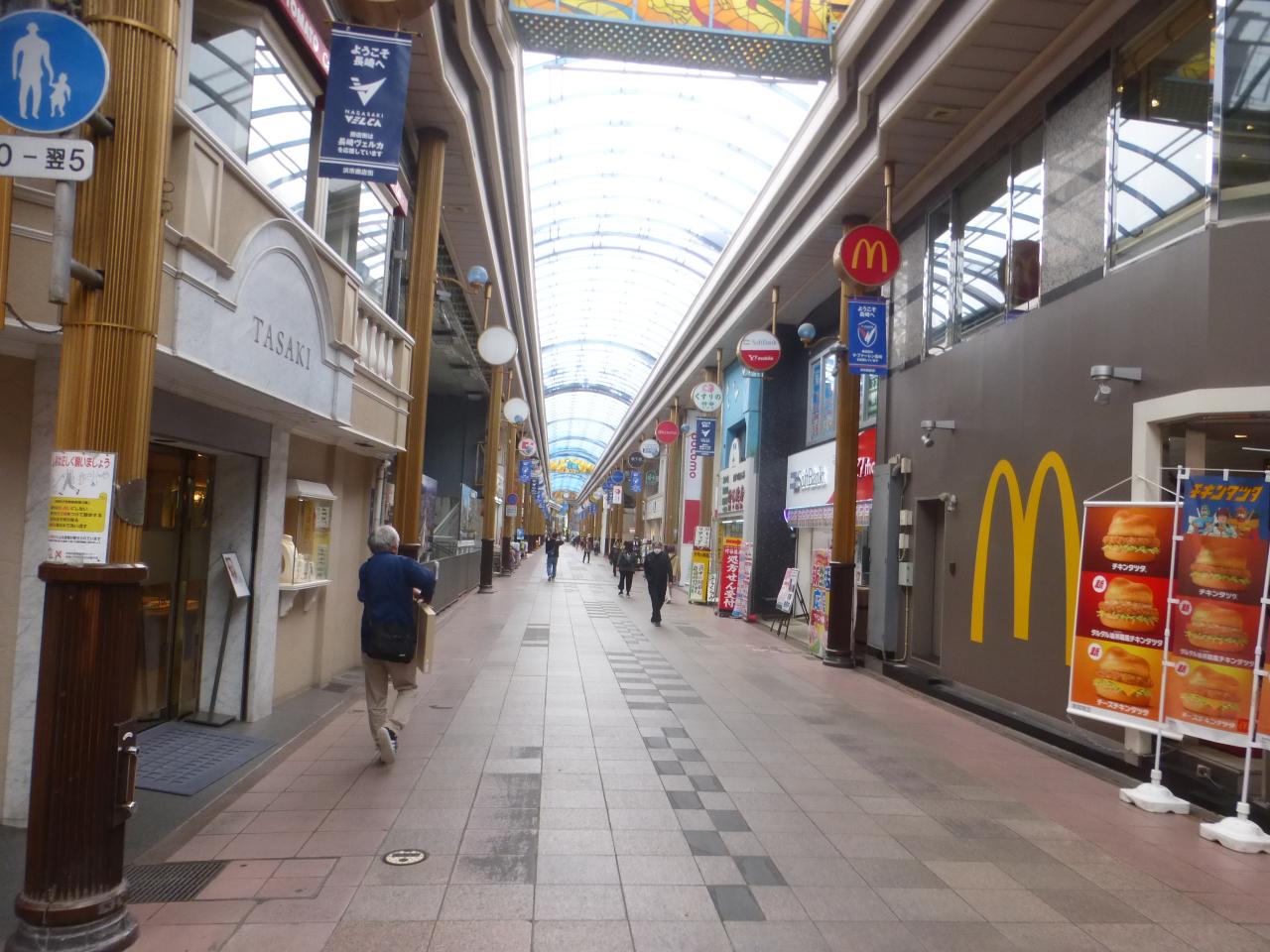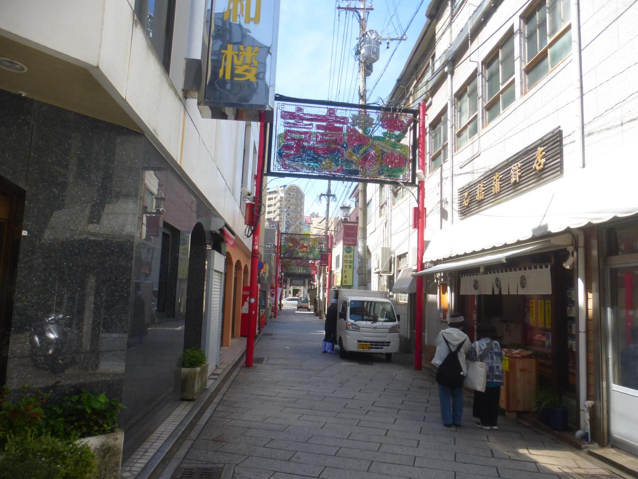 このアーケード街を真っ直ぐ行くと、路面電車の観光通り電停に行く事が出来、更に真っ直ぐ行くと新地中華街に行けます。