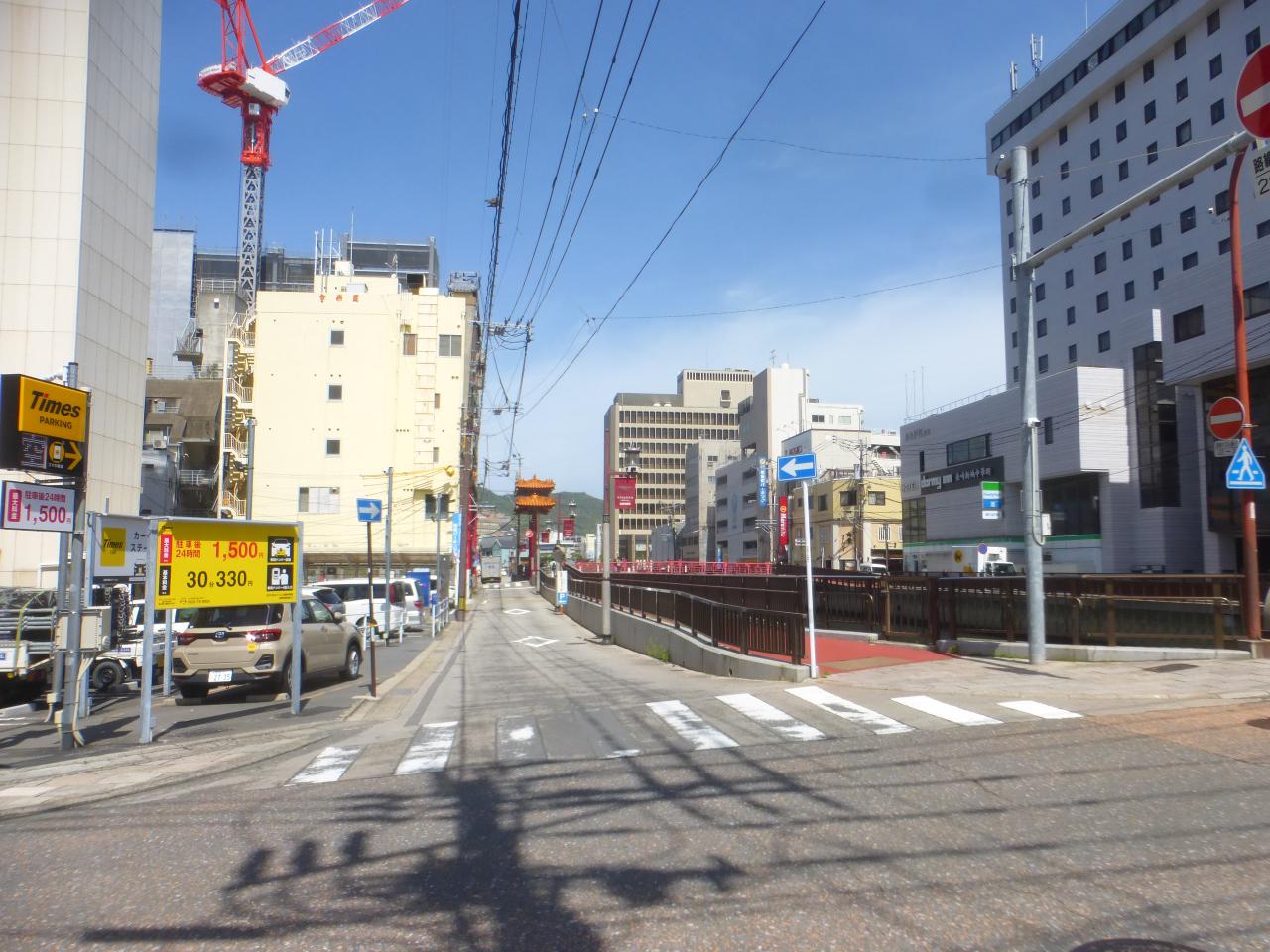 真っ直ぐ行くと、眼鏡橋の近くに出ます。