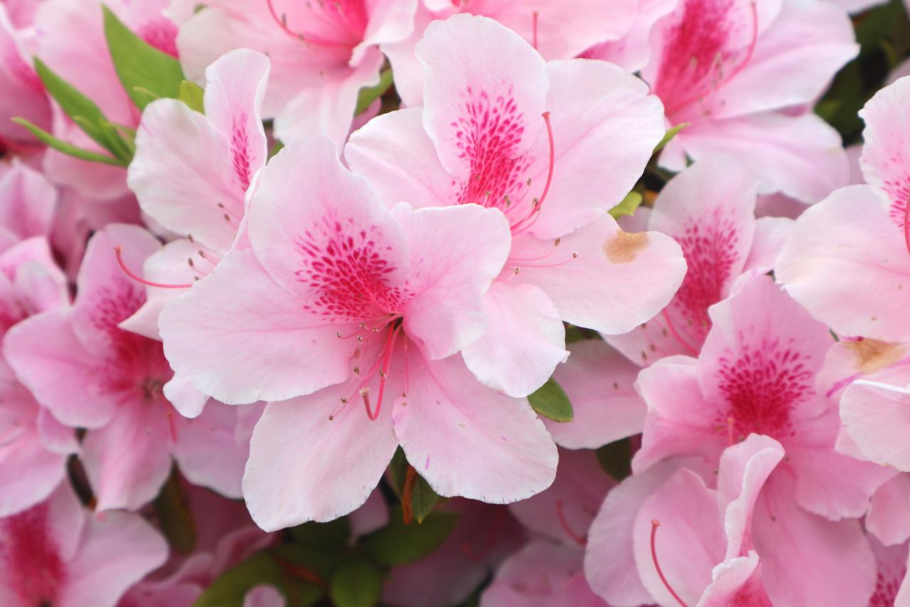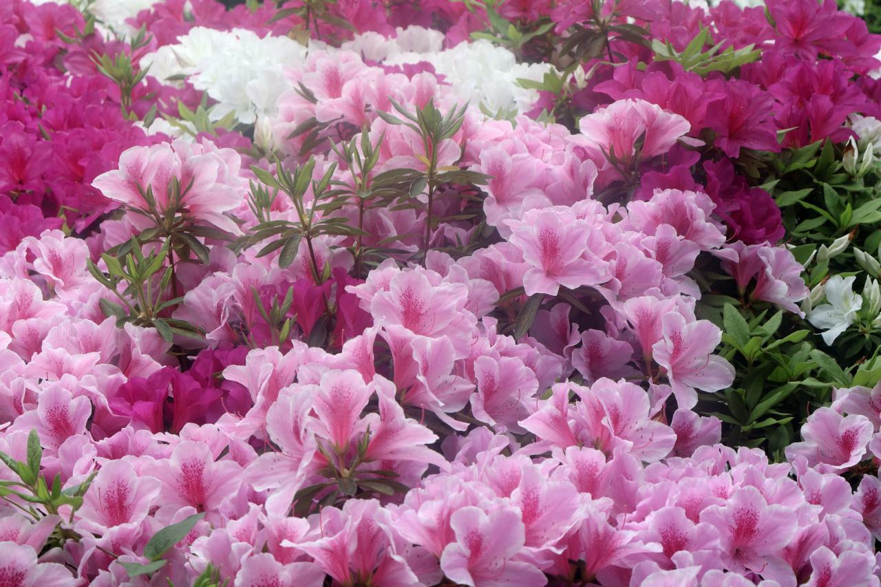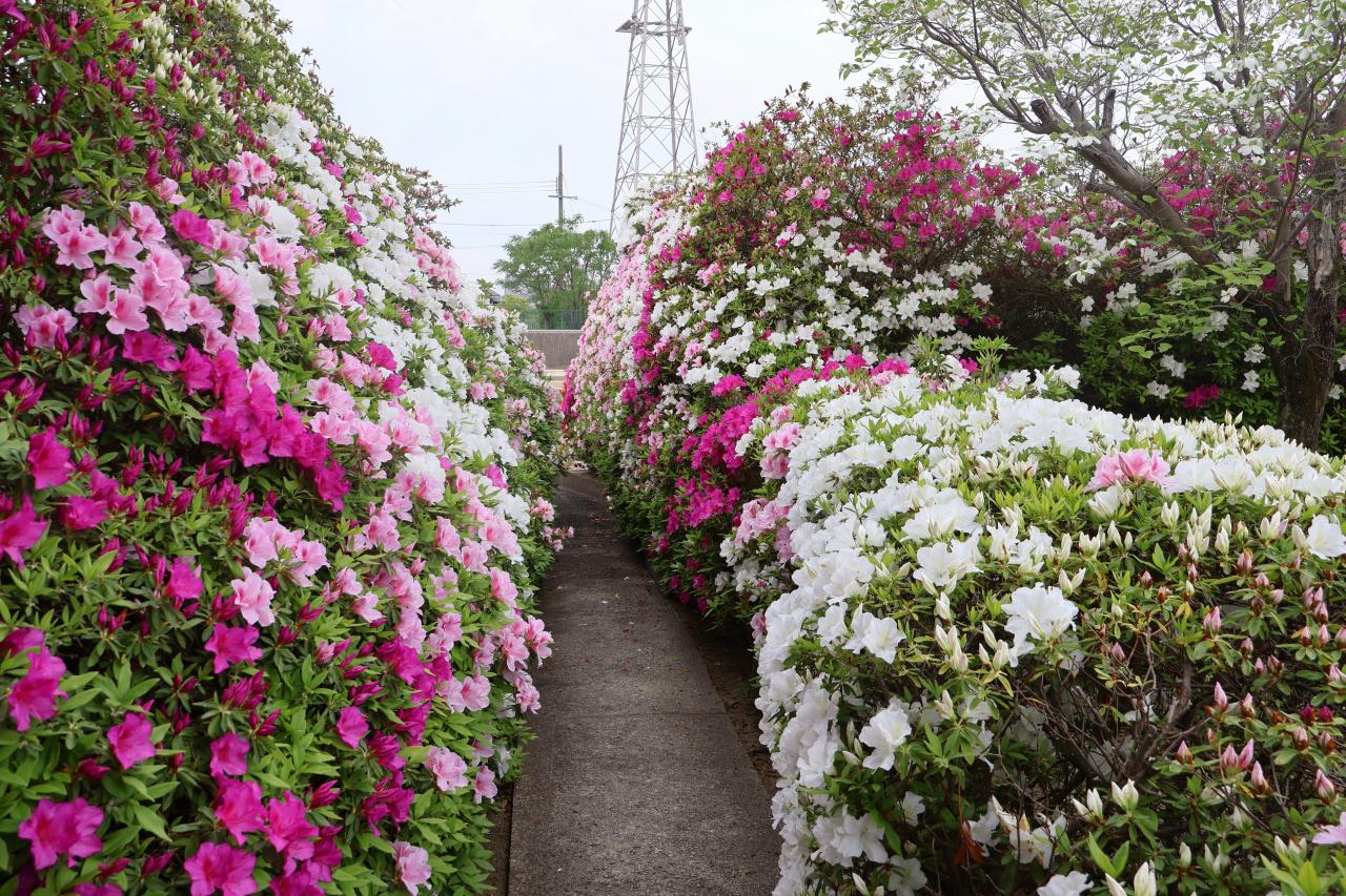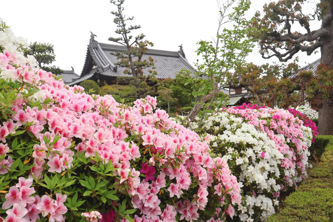 見頃となっている赤・白・ピンク約1,000株のツツジが境内を埋め尽くしていました。