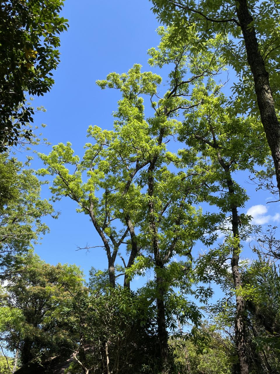 木々の若葉、青い空