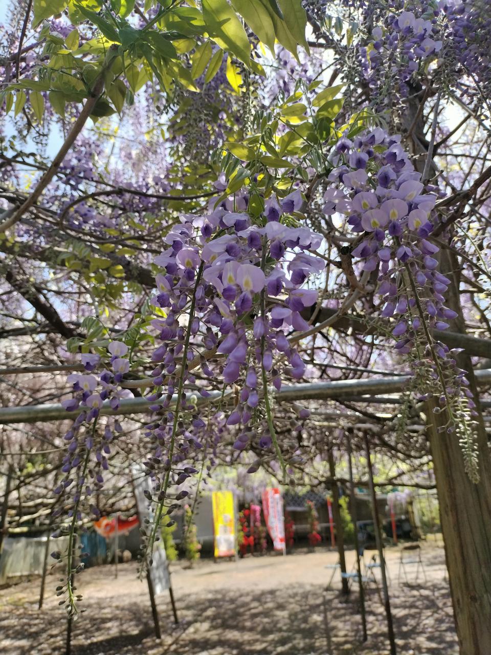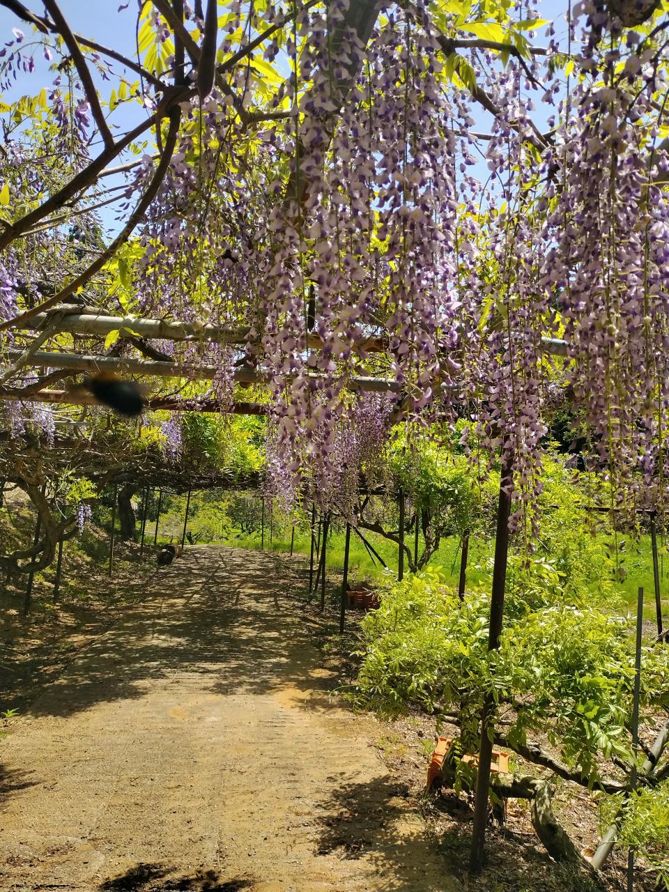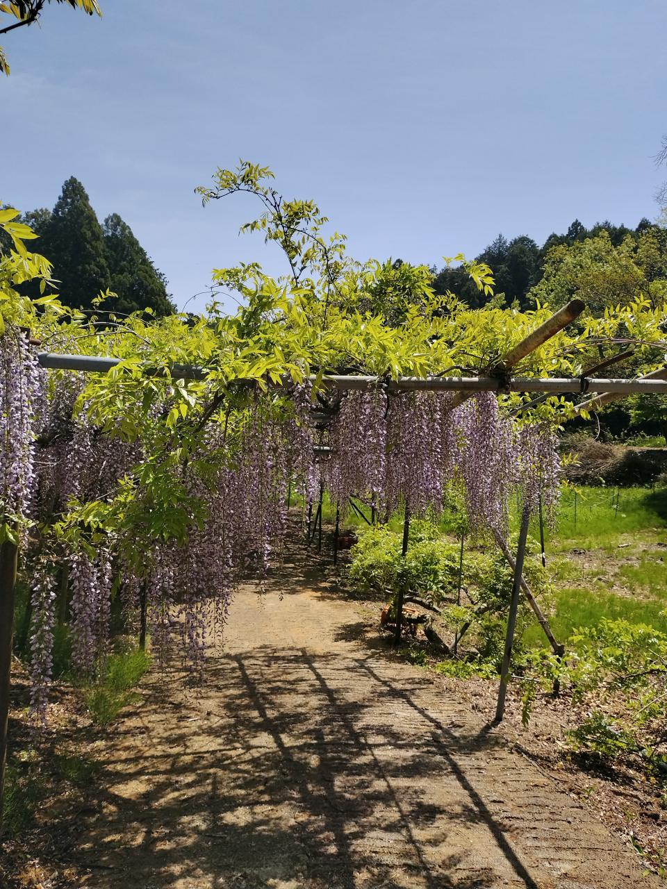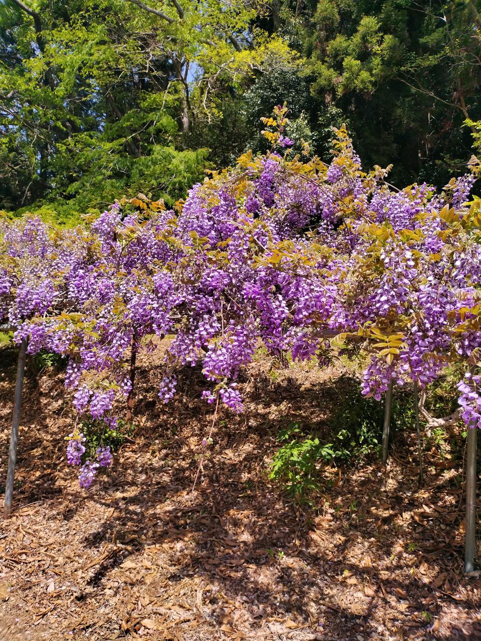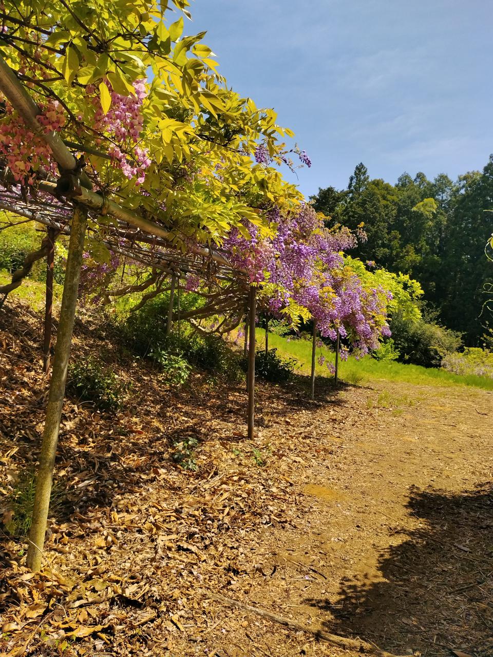 東側は藤棚がひろがりその奥にも自然型の藤畑がひろがっています。