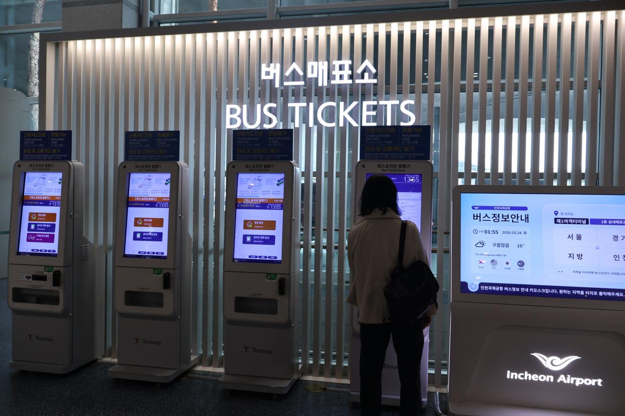 ソウル仁川国際空港内にあるバスチケット売場(自動券売機)空港周辺に行く路線バスが出ています