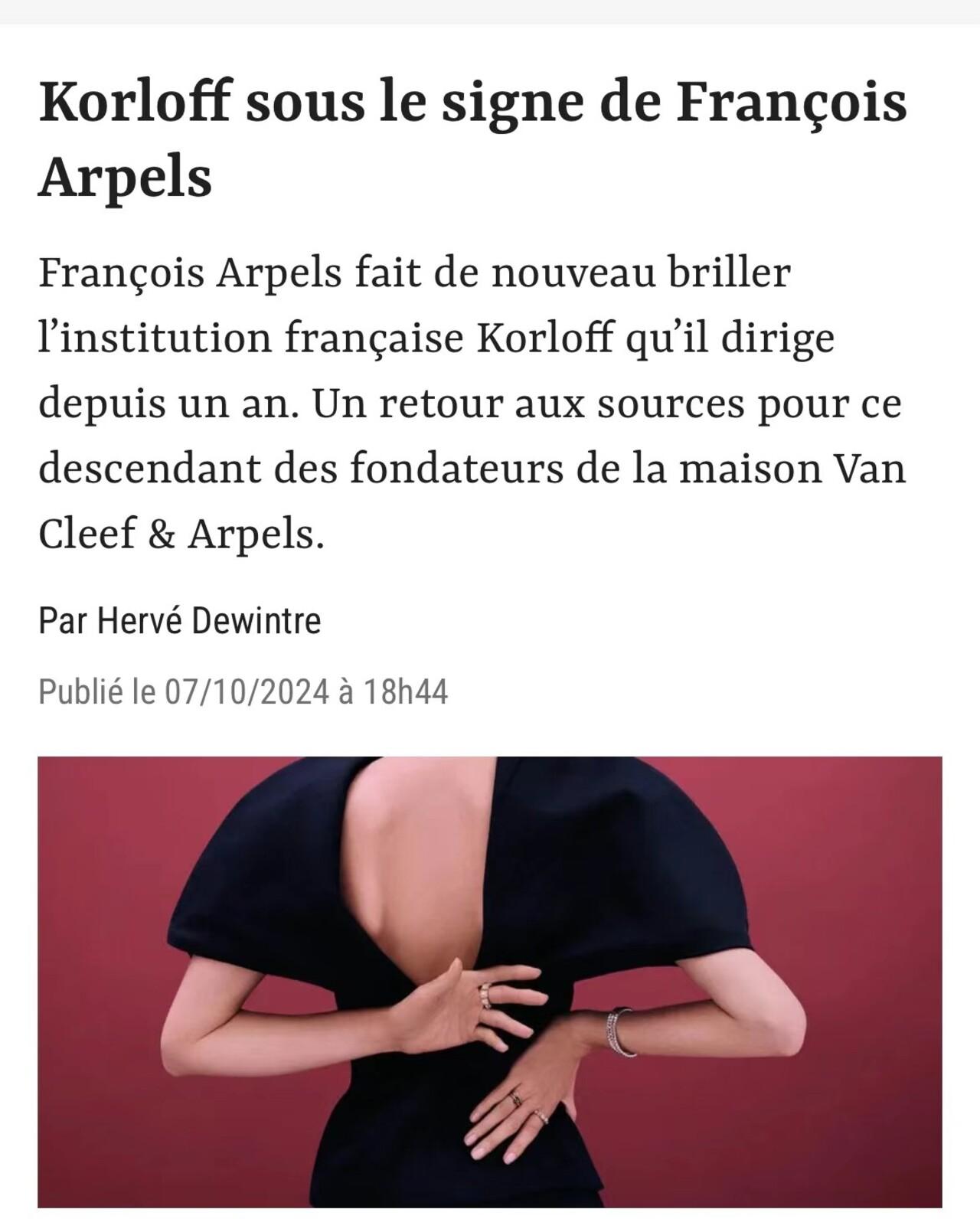 先日のパリ旅行中、優雅なRue de la Paix(リュードゥラペー)をのんびり歩いていると、ふと目を引く大胆で洗練された宣传ビジュアルが目に飛び込んできました。黒と白のダイヤモンドが強くコントラストを放つジュエリー——ブランドはKorloff(コルロフ)、1978年にパリで生まれたフランス独立系の高定珠宝メゾンです。